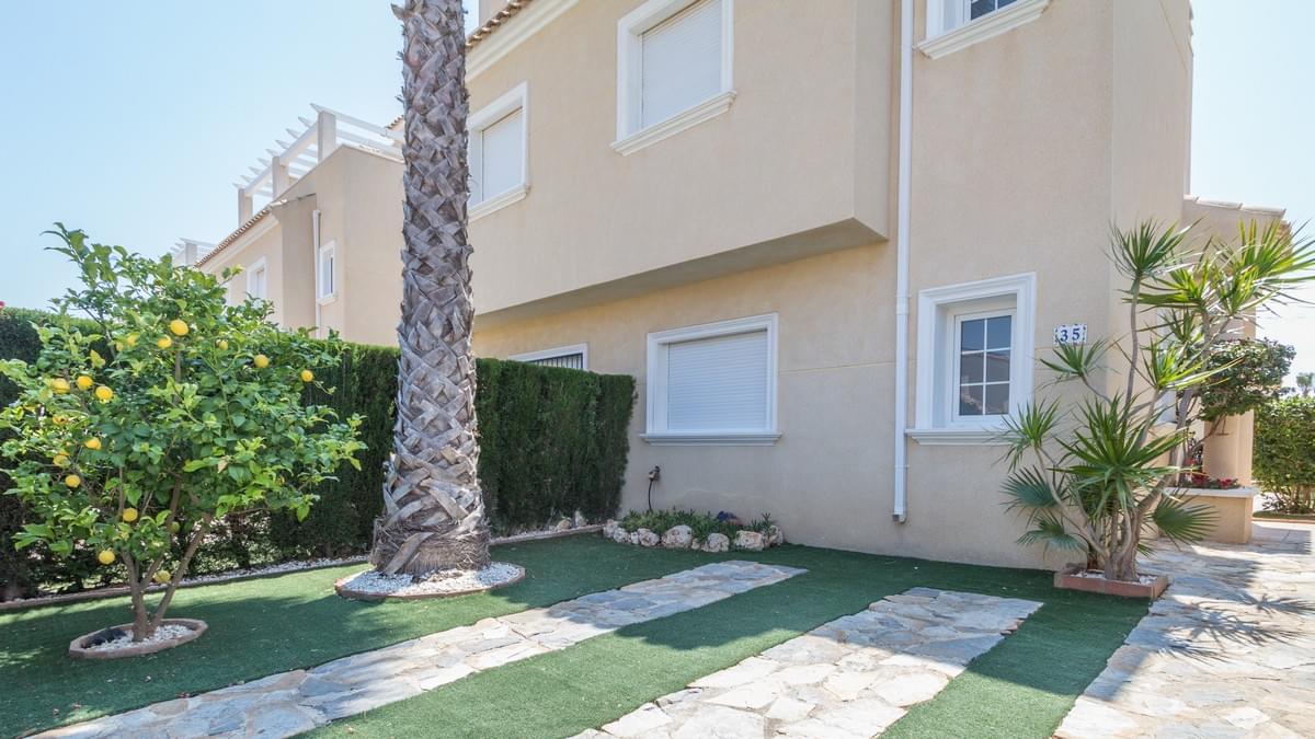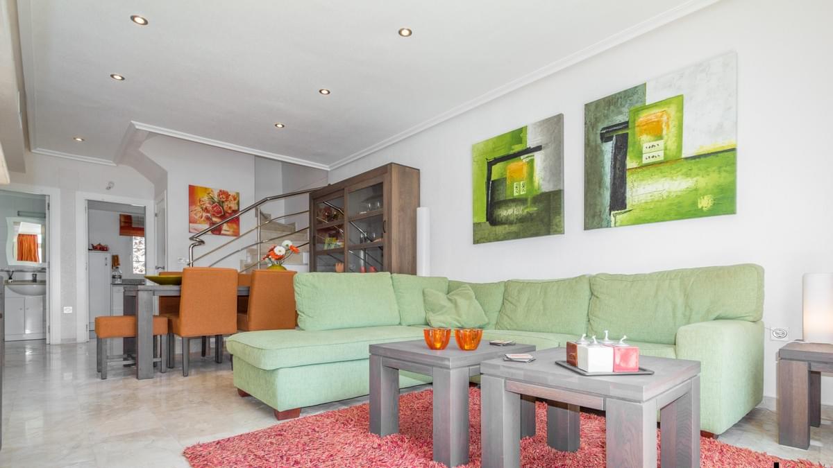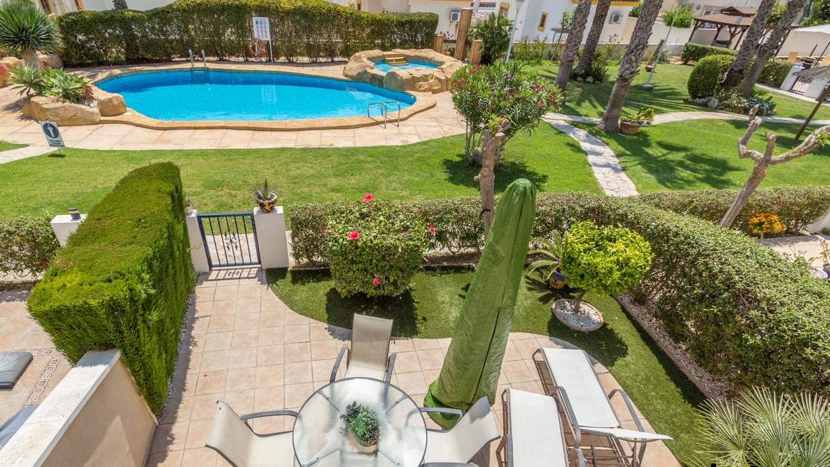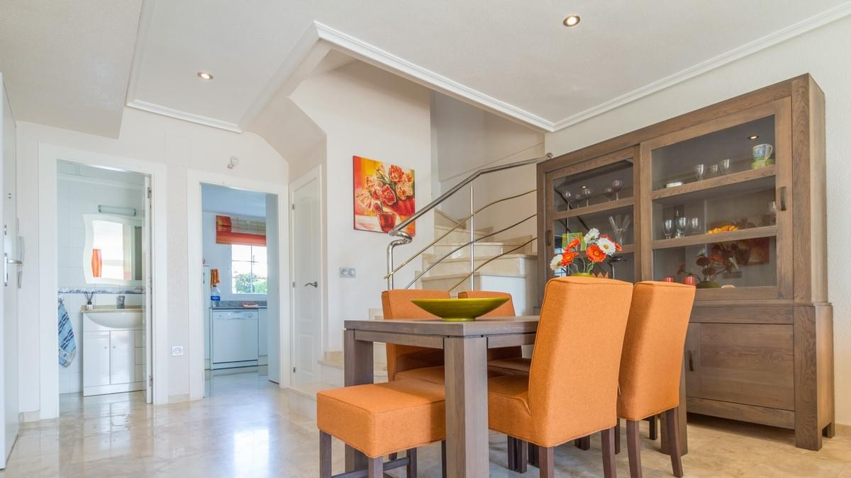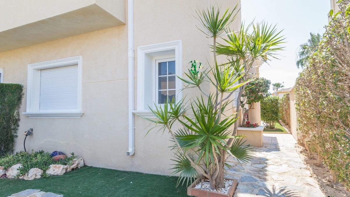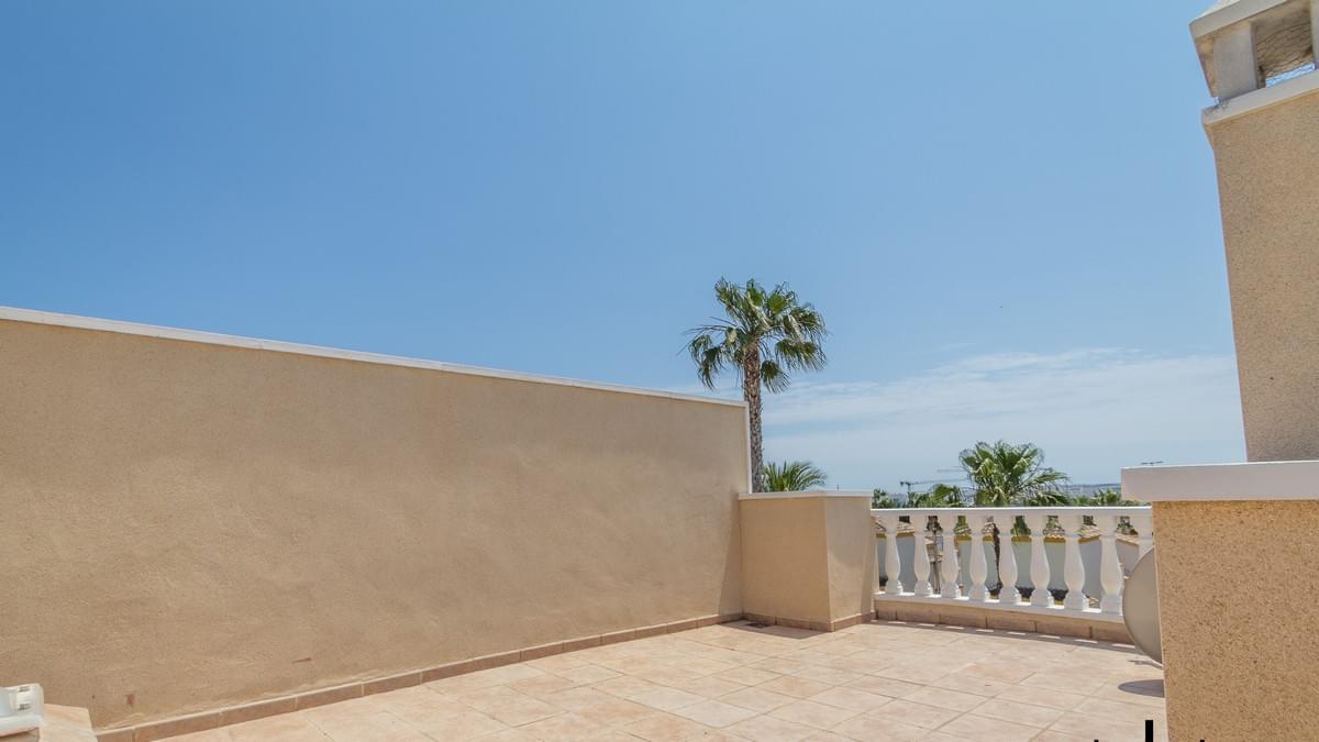 FOR SALE Ref-2969 Stunning 2 bed, 3 bath Semi Townhouse, El Raso, Guardamar, Alicante. €169.900,- Wow, what an incredible property we have for sale in the super popular area of ͚El Raso͛. This immaculate semi-detached, south facing townhouse is part of a stunning small community with wonderful gardens and pool area. El Raso is a residential area set between the very popular town of Ciudad Quesada and Guardamar and next to the ͚La Mata͛ natural park and lake. The property itself on the ground floor has a large open lounge and dining room, a separate wc and wash basin, a separate kitchen, understairs storage and an ornate marble staircase leading to the first floor. Here you find the two double bedrooms both benefitting from large en-suite bathrooms. The stairs carry on up to a large roof solarium giving incredible views over the development and on to the lakes and the Med. The property boasts split zone air-conditioning and heating and is being sold fully furnished with all very high-quality furniture. This property also has off road parking (unless you have a Cadillac) and the private gardens are maintained by the community gardener meaning life is easy with this exceptional property. Gorgeous communal garden and swimming pool. Must be seen !!! and a nice Free Gift Voucher (promo code HS1222)