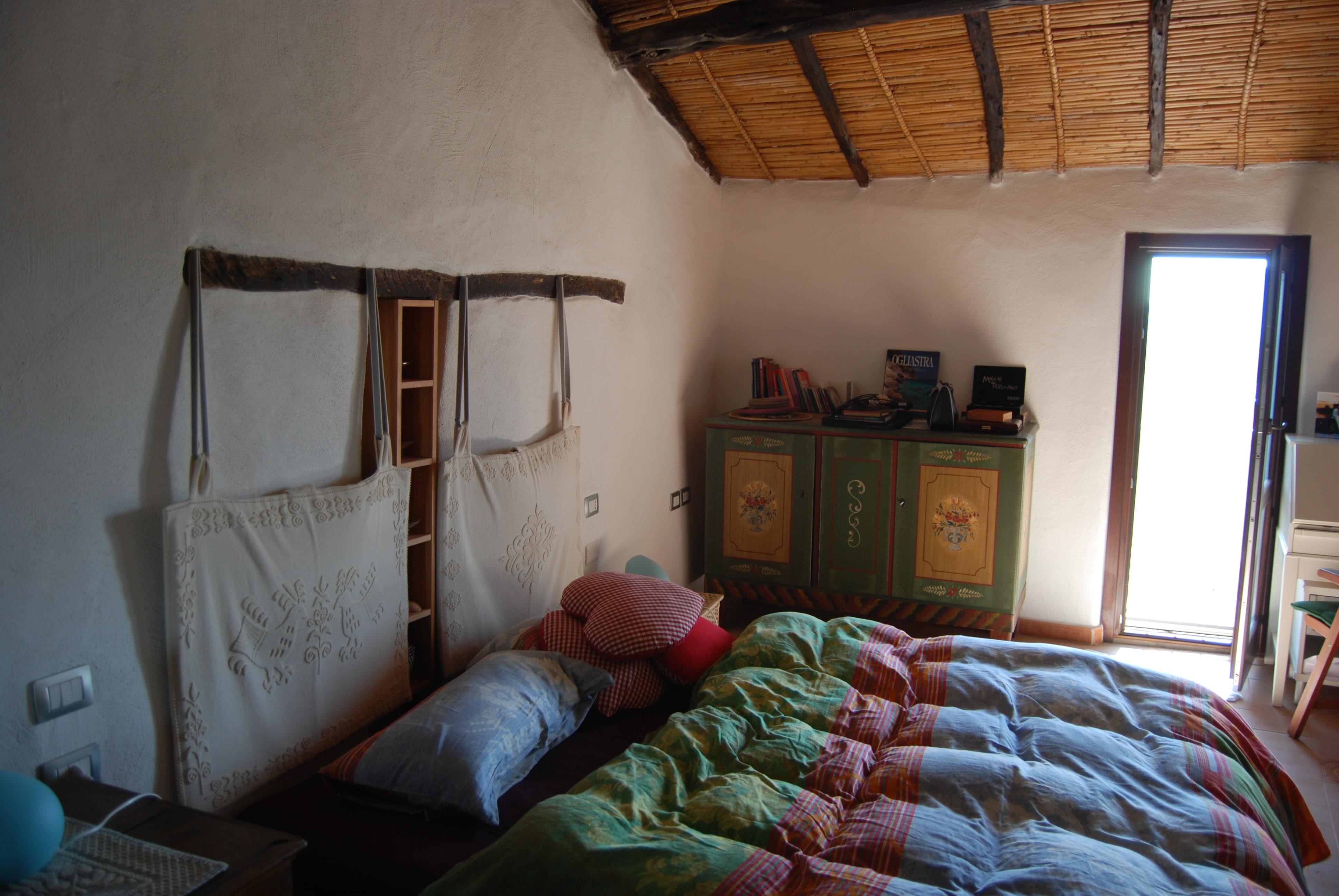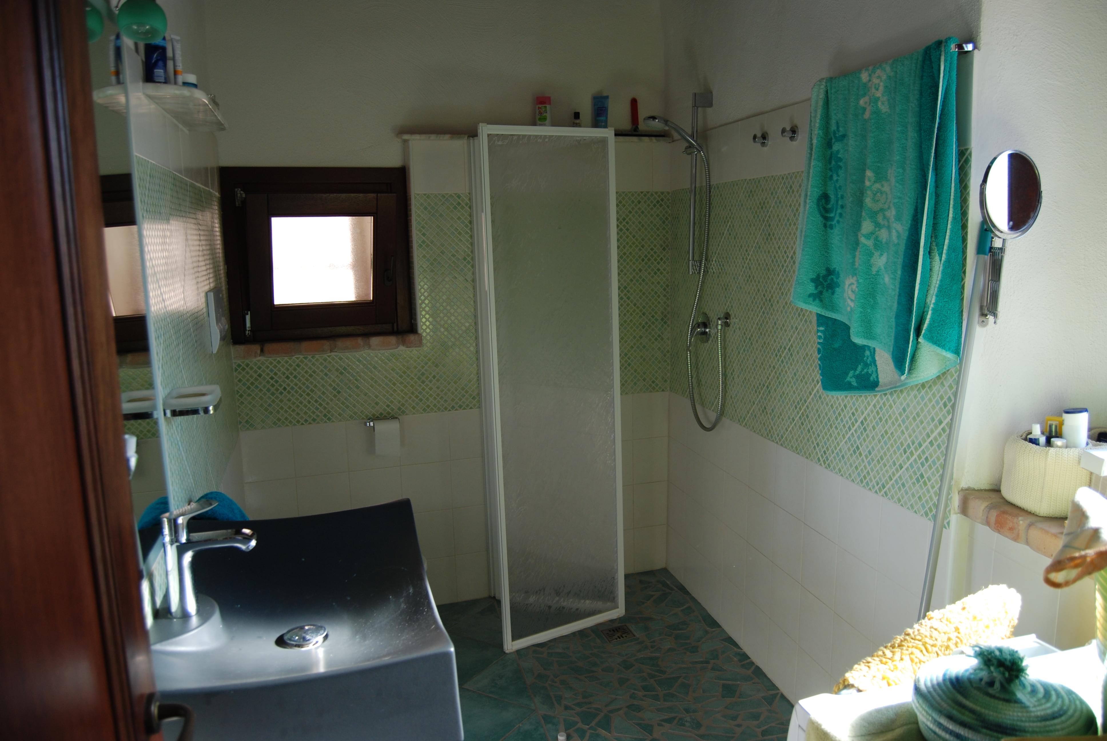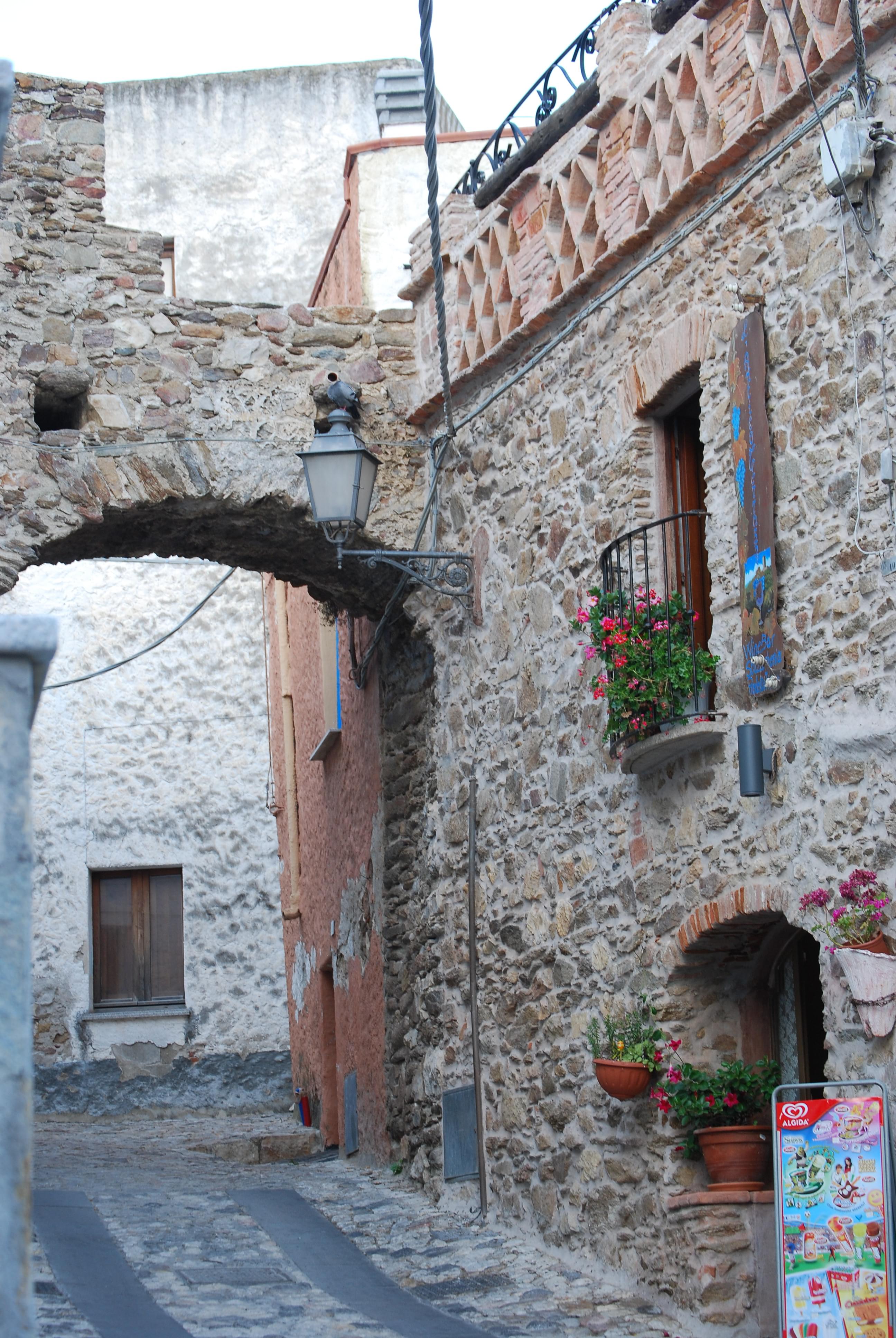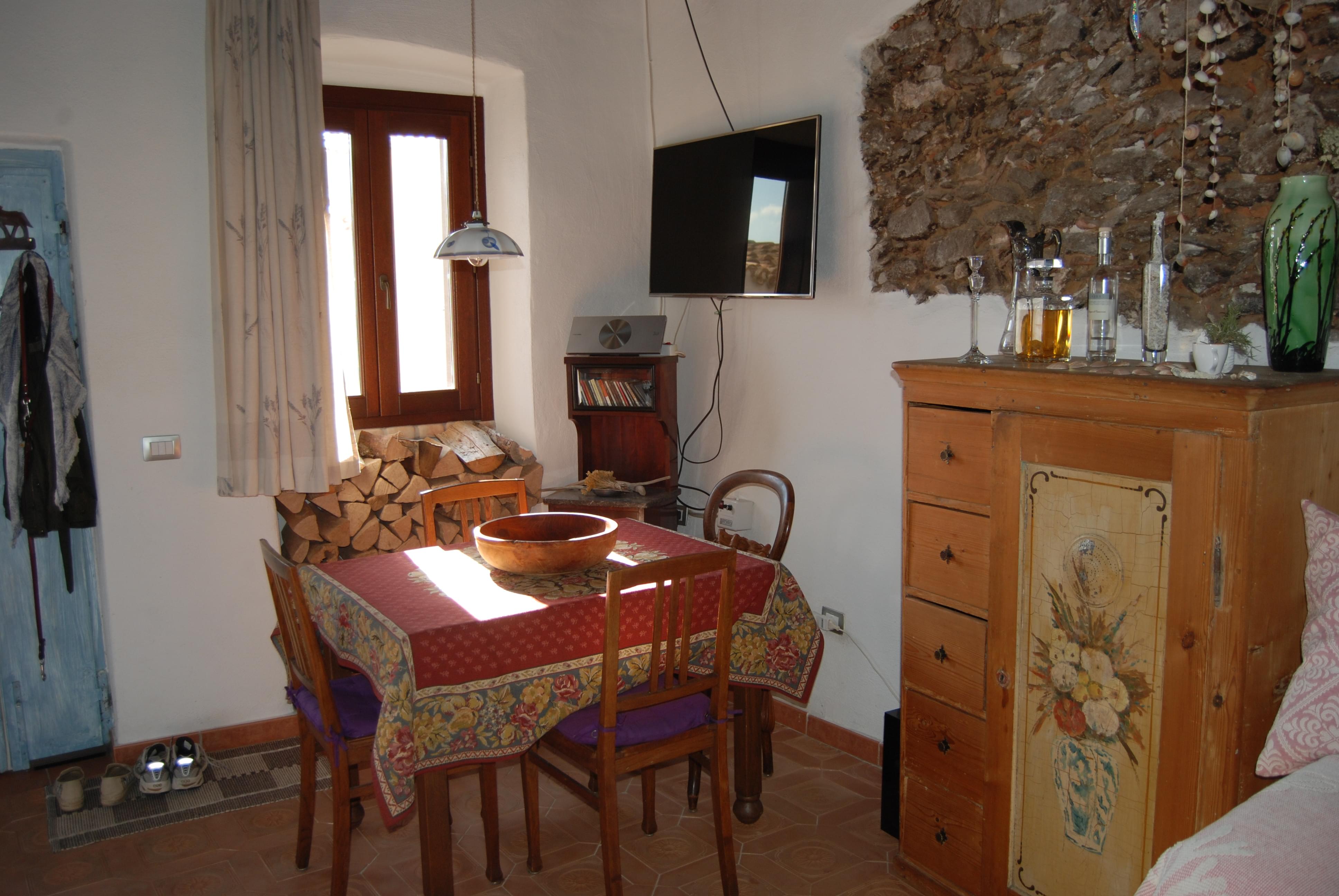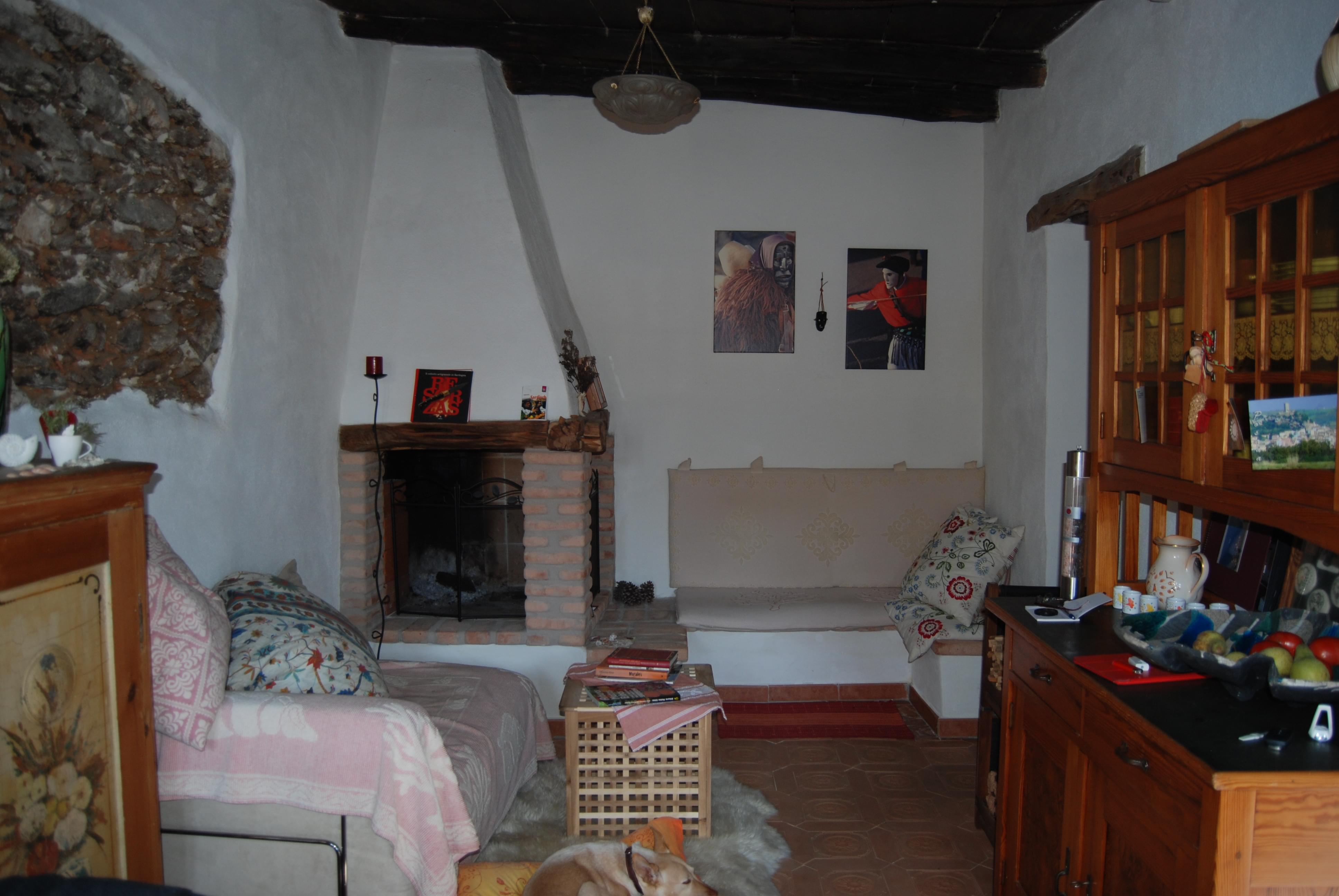 On the upper level there are 2 bedrooms with sea-view and a small terrace with a view of the castle ruin, sea and bordering mountains. The ceilings maintain the typical Sardinian style here, with reed matting between juniper wood beams. The old floor tiling could be saved in both rooms. Similarly, it was decided not to realign any of the walls, everything was newly plastered but the original flowing lines of the walls survived. Plumbing and electrical installations are brand new, all doors and windows throughout the house were replaced; some were even made to measure. For aesthetic reasons real wood window frames and doors were selected. The roof leaked, so was given new insulation and coating. All windows have a built-in insect screen, which can be pulled up and down like blinds. There is satellite TV with German stations, a landline telephone connection for good Internet access, the fireplace has a ventilator to guarantee a soot-free atmosphere even in problematic weather conditions. As the water supply is sometimes limited, a 500 l tank has been installed. “Ange” lies in the middle of the historical part of Posada. Residents can drive their car up to the house, but no through-traffic is permitted.