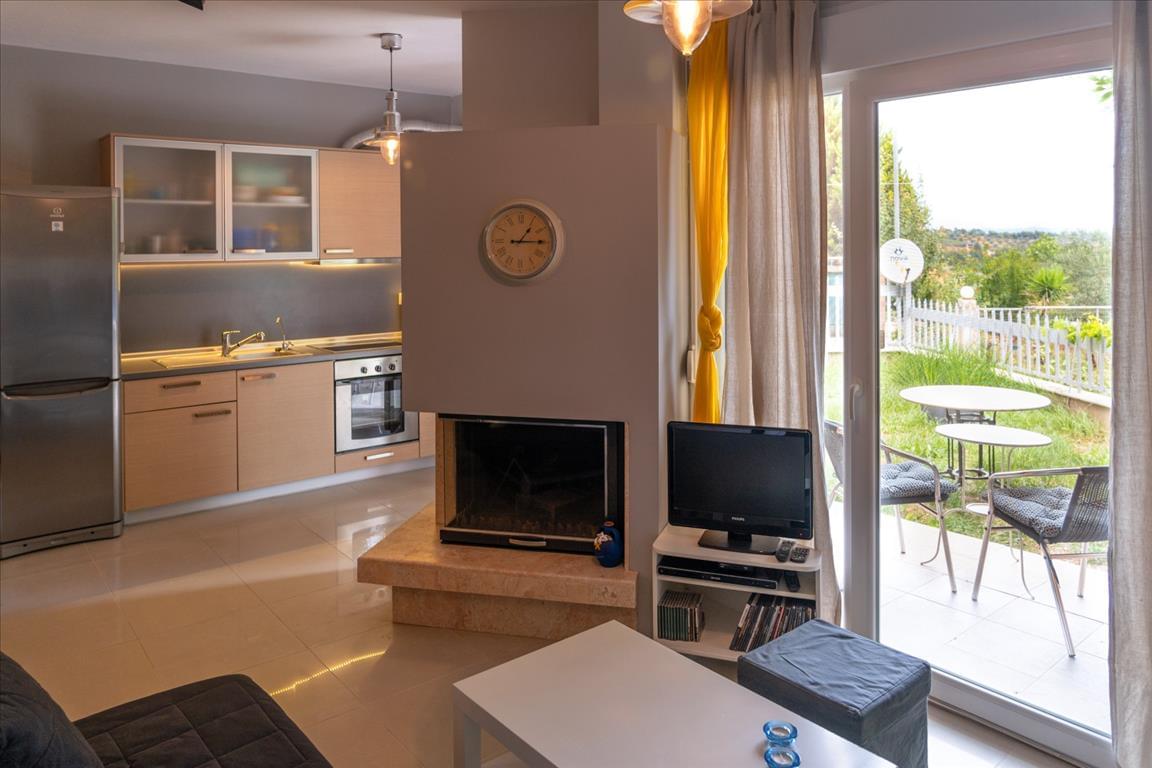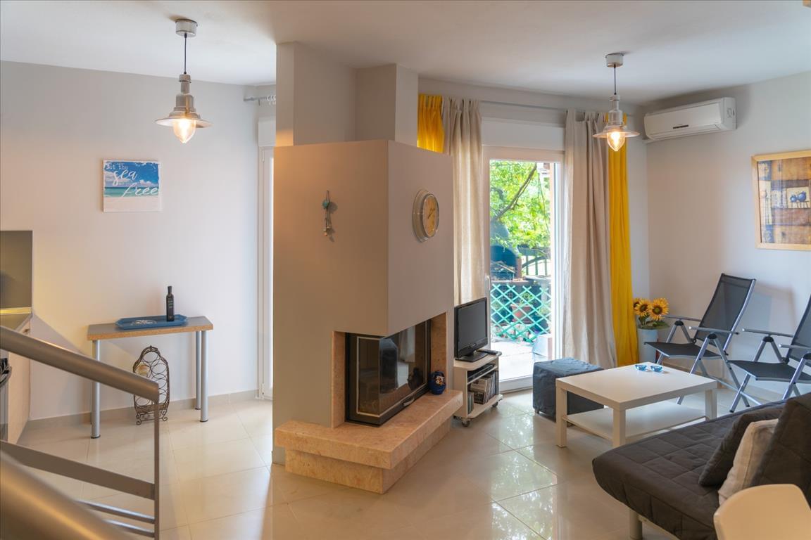 For sale is a 74 square meter townhouse on the Sithonia peninsula, the Halkidiki region. Taynhaus is located on 2 levels. The first floor consists of a living room with kitchen, one shower room, one storage room. The second floor consists of 2 bedrooms, one shower room. Has a view to the sea, to the mountains, also has furniture, armored entrance doors, fireplace, air conditioning, parking space, garden, heating, alarm, utility room.