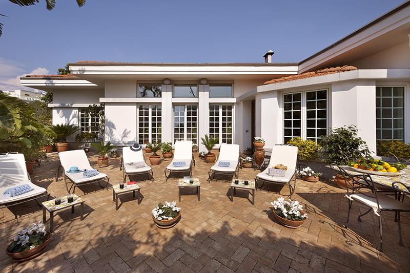 Эта вилла отличается современным дизайном, который основывается на идее объединить все просторные комнаты в одно целое — большие гостиные и столовые. Высокие окна в залах освещают весь дом и создают в нём уютную и расслабляющую атмосферу. Вилла была построена в 1970, а позднее приобретена, обустроена и обогащена коллекцией мебели самим графом Марио Караччоло — потомком аристократической неаполитанской семьи, которая решила переехать в Сорренто — «убежище мифических сирен». Сорренто расположился на огромной скале над морем и был всегда излюбленным местом отдыха итальянских аристократов и международной элиты, которая в летнее время переезжала сюда, чтобы насладится мягким климатом, красотой пейзажей и щедростью этой земли. Вилла «Роберта» была обновлена и стала идеальным местом для отдыха. Этот дом находится в самом престижном квартале Сорренто, где расположены знаменитые гостиницы города. Вилла представляет собой типичный городской дом со своей отдельной огороженной территорией и со всеми современными удобствами. Большим преимуществом является месторасположение в центре города. Из Сорренто можно просто доехать до самых главных достопримечательностей: за 15 минут можно доплыть на катере до Капри или доехать до Помпей на поезде, а до всех самых знаменитых городов Амальфитанского Побережья ходят автобусы. Кроме того, в Сорренто есть огромный выбор ресторанов, начиная с престижных заведений со звёздами Мишлен, и заканчивая тавернами с прекрасной местной кухней на основе морепродуктов. До пляжа Миринелла (Marinella) - около 500 м.