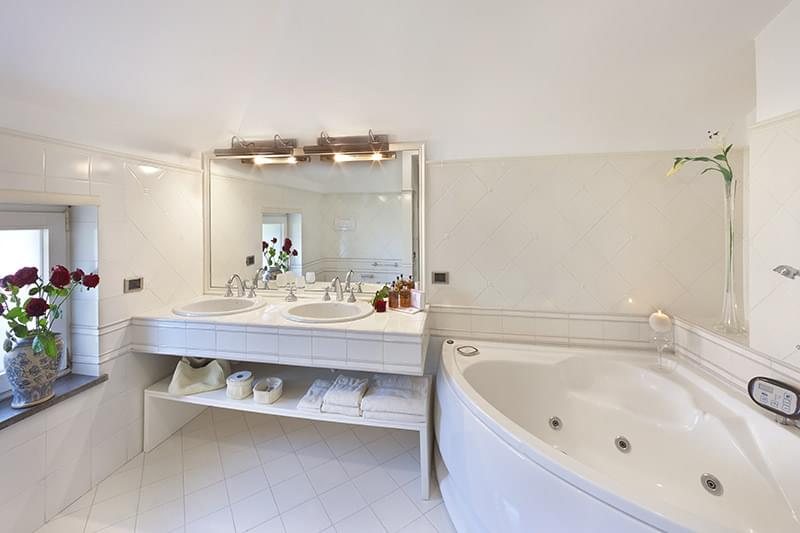 ВТОРОЙ ЭТАЖ: 1 спальня с двуспальной кроватью (которая разделяется на две односпальные) с прилегающей ванной комнатой с душем и джакузи; 1 спальня с двуспальной кроватью (которая разделяется на две односпальные) с прилегающей ванной комнатой с отдельным душем и ванной; 2 спальни с двуспальными кроватями; 1 ванная комната с ванной.