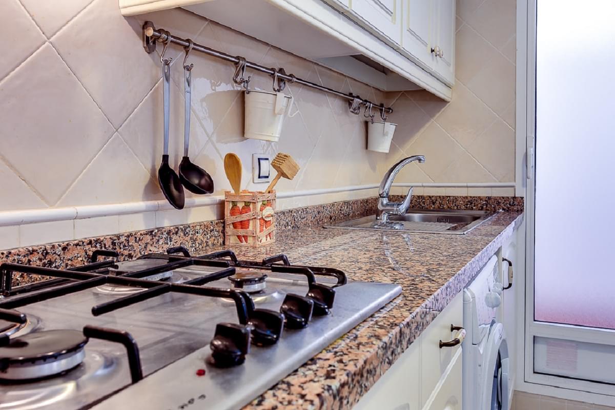 В апартаментах сделан капитальный, стильный ремонт. Застекленная терраса с мебелью. Полностью оборудованная техникой кухня с патио (внутренний дворик), просторный холл и спальная комната со встроенным шкафом-купе для хранения вещей.