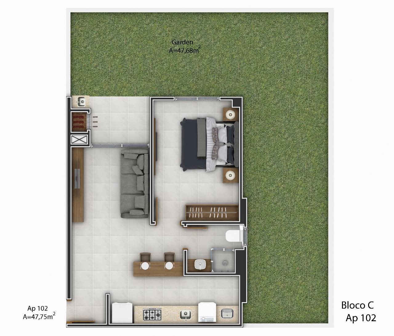 Building under construction with 3 Towers with beginning of the work in June 2018, delivery scheduled in June of 2020, some apartments have balconies with View to the Sea. Project in the Region of the Gaviotas noble area in the Beach Ingleses in land of 1.772m2, with lift, party room, bicycle pool, community pool and party room are located on the terrace of Tower B with access for 3 towers, playground, kids space, landscaping, porter with electronic biometry, electronic iron gate, floors in polished porcelain, plaster details on the walls, intercom system, piping for alarm with presence sensor, tubing for cameras, central gas, hot water, meters of light, individual water and gas, balconies with private grills, details in the front of building in mirrored glass.Apartment GROUND FLOOR with GARDEN with 1 bedroom , 1 bathroom, living room, kitchen, service area, balcony with private barbecue,private garden with 47,68m2 , garage for 1 car, Useful Area of : 65,46m2, Total Area with garaje : 97,45m2.