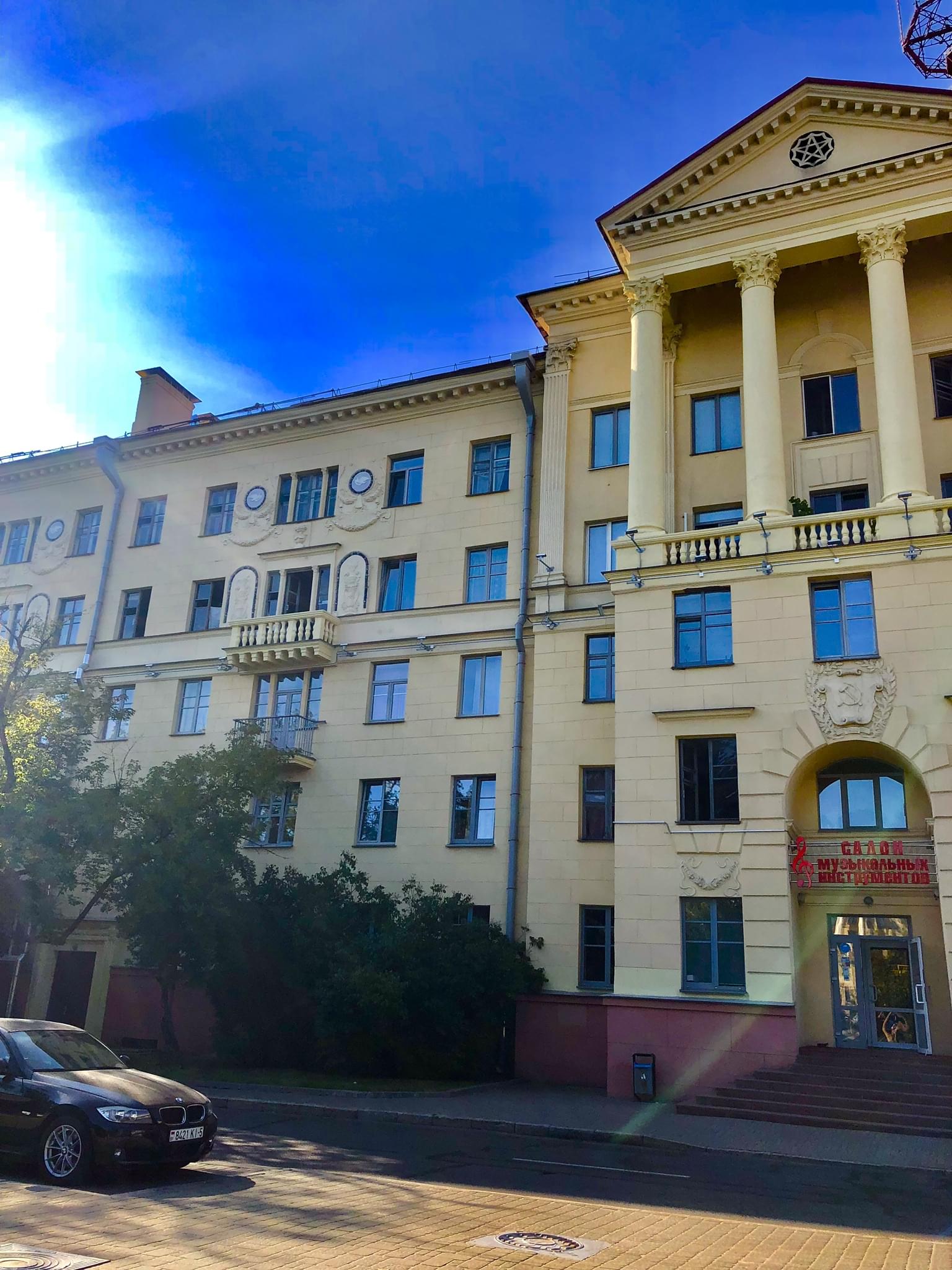 The apartment is located in the center of Minsk on the 2nd floor of a 5-storey brick house. The house is an architectural monument. A quiet, cozy green courtyard with lots of parking spaces. Spacious comfortable apartment with excellent repair.