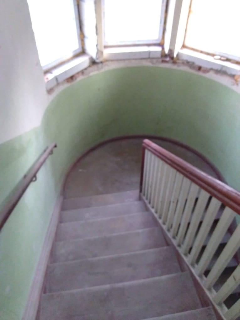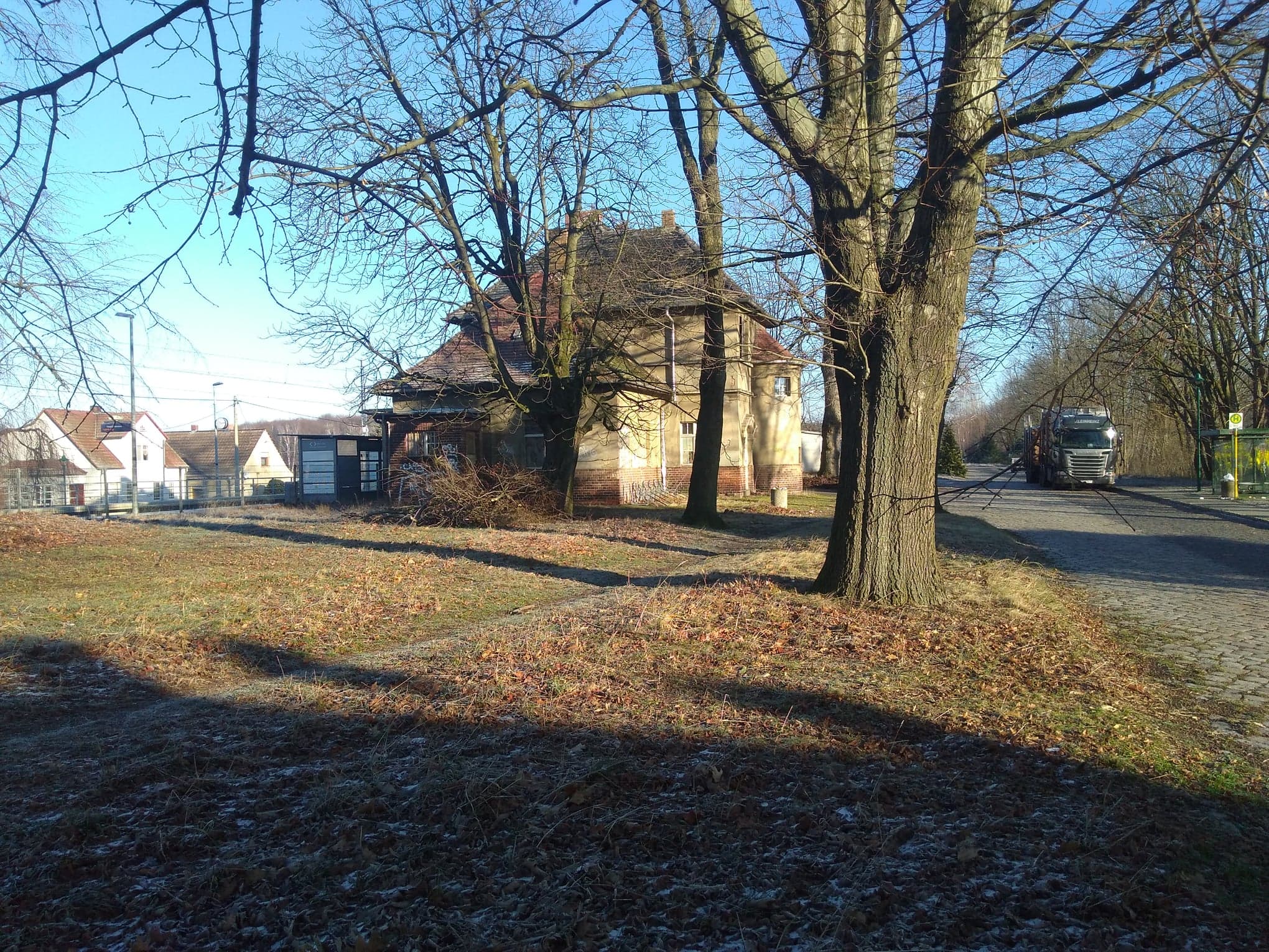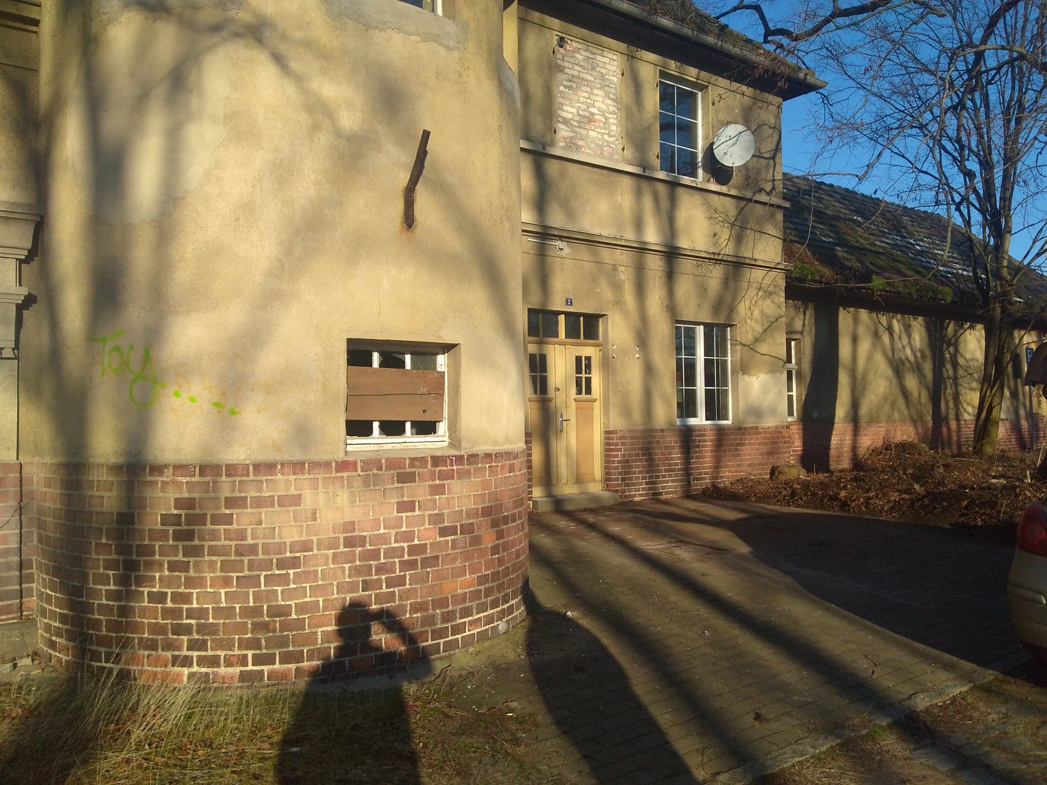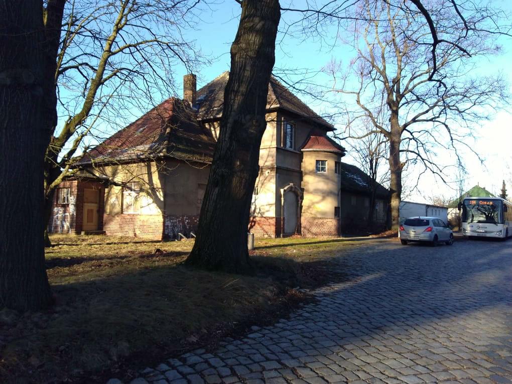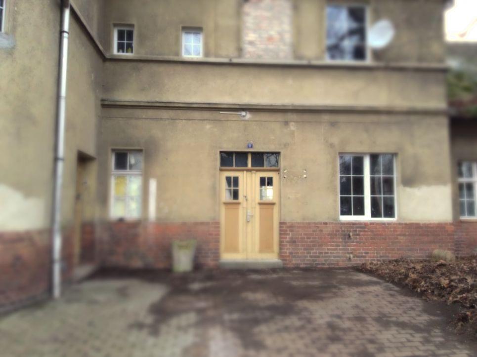 Building 1: office and residential building. Bj. Ca 1924. Former railway station. Electricity and water supply (new), basement. Repair work has begun (new plumbing fixtures and PVC windows, some have been already installed). In front of the building are parking lot, a bike stand and a bus stop.