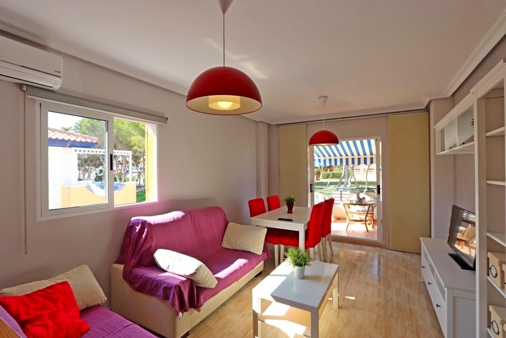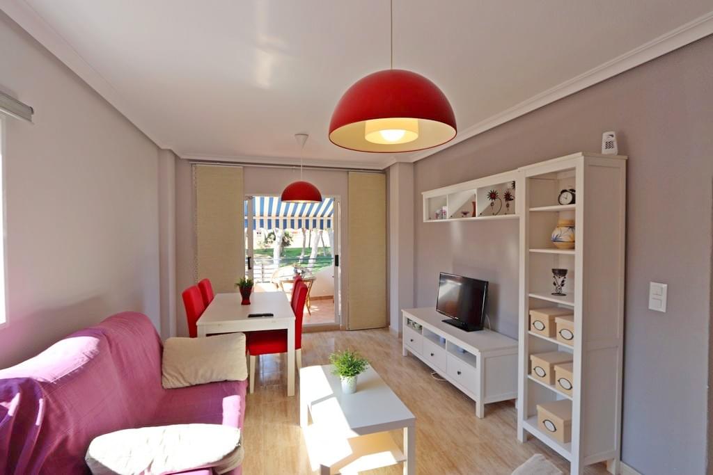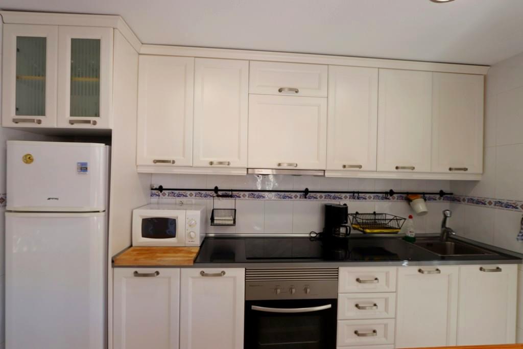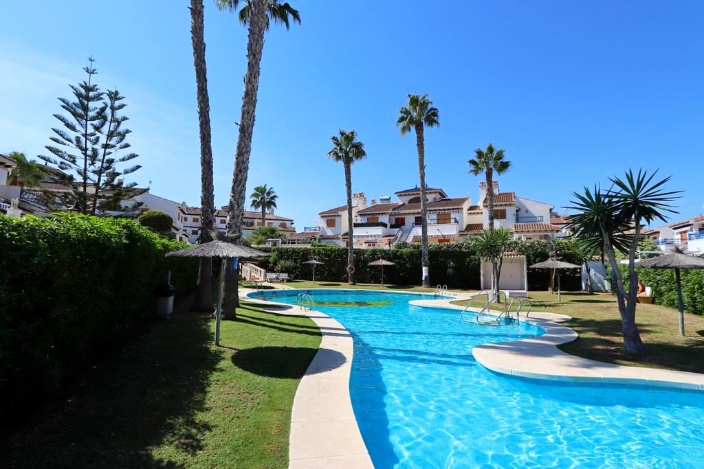 Beautiful south facing Apartment in 2nd floor, located in the Urbanization "Riomar" - Mil Palmeras. The house has 67m2 and consists of 2 bedrooms, 1 bathroom, laundry room, living room, kitchen and a large sunny terrace facing south overlooking the common green areas of the Residential. It is sold furnished and equipped. Residential with large green areas and community pool just 900m from the beach of Mil Palmeras. Tax 200 euros / year. COMMUNITY FEES 45 euros / month.