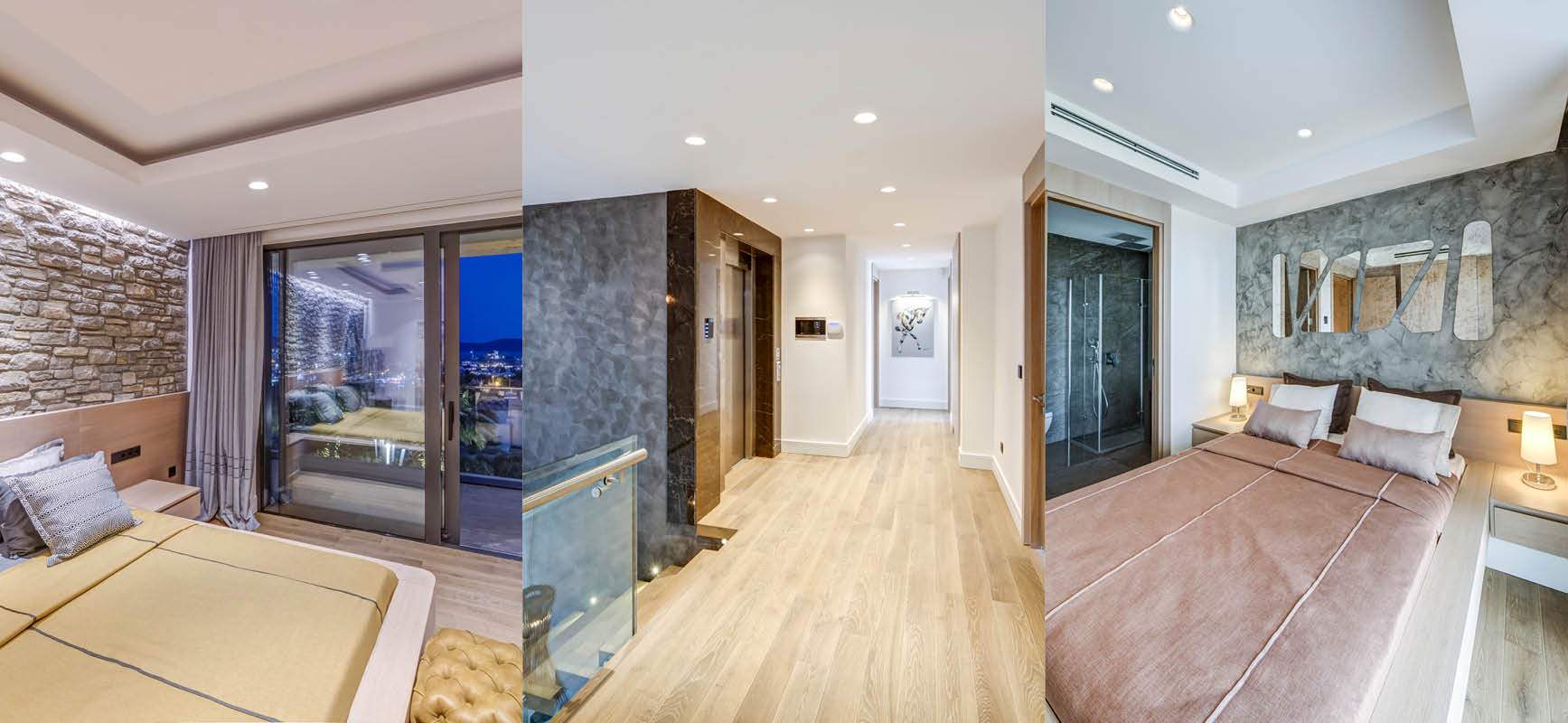Villa in a perfect location. 813 sqm - 7 bedrooms - 6 bathrooms - kitchen - smart home system - lift - underfloor heating - security cams - parking space for 6 cars - large private spa area - private garden - private pool - air conditions.... Location: only 1.000 m far from the heart of Bodrum - 1.400 m far from the sea and the yacht habour - 500 m from the next hospital - a lot of shops and restaurants are nearby. Sea view - castle view - Bodrum view....