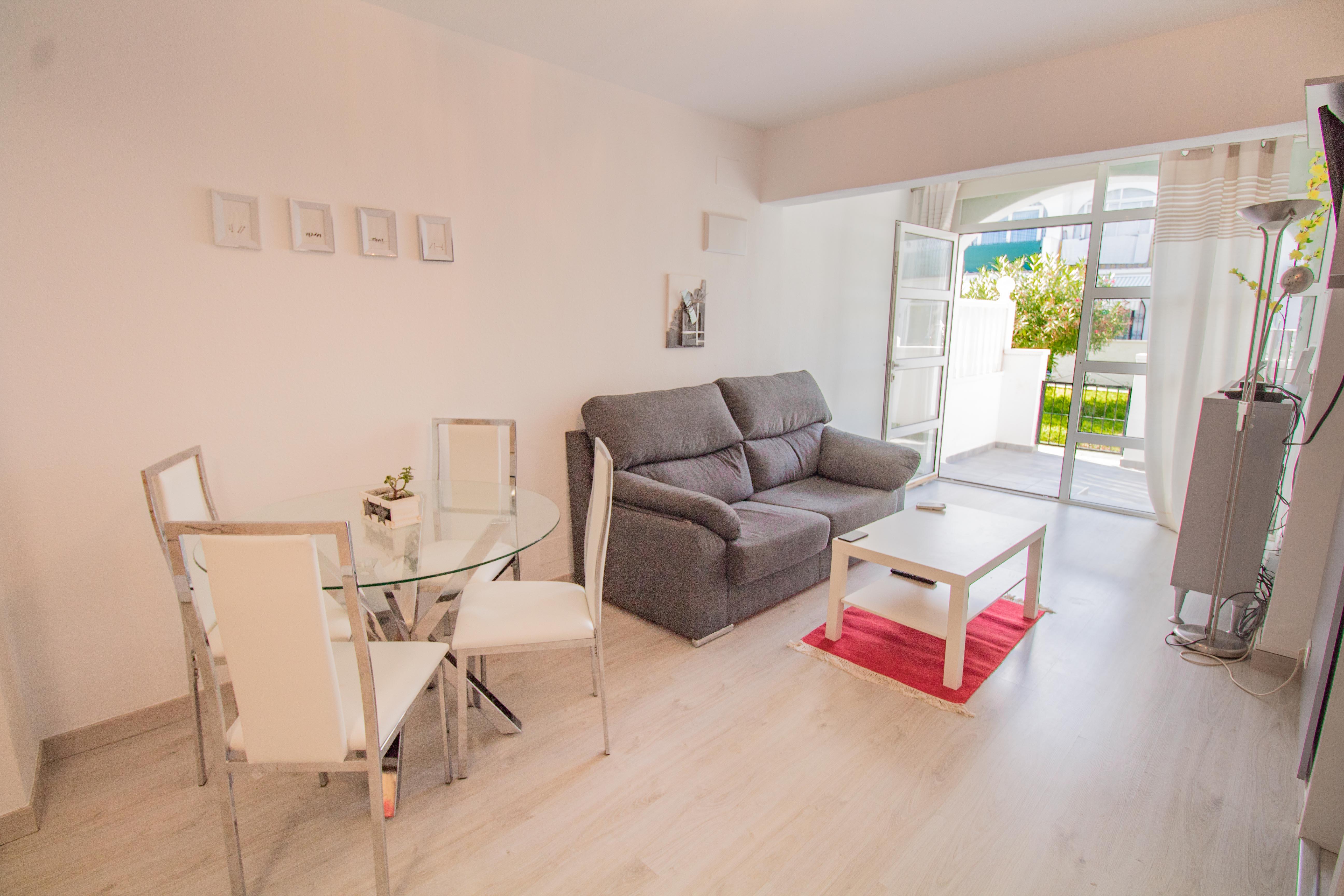 The property is a well looked after ground floor Spanish bungalow. It is a very bright south facing property. It benefits of a lovely terrace, a large living room with a very well-organized open plan kitchen, a full bathroom and one bedroom with wardrobes. One of the best features of this lovely property is the patio, it is facing onto the green areas.