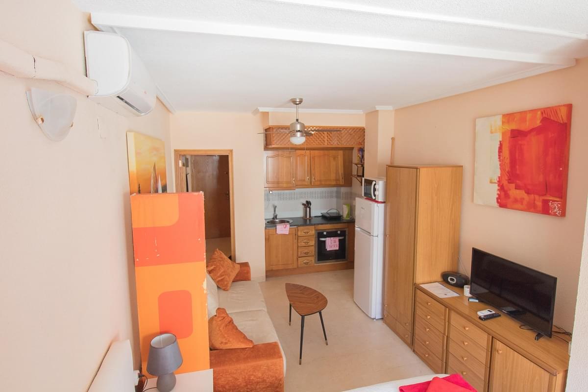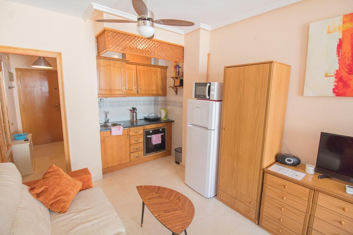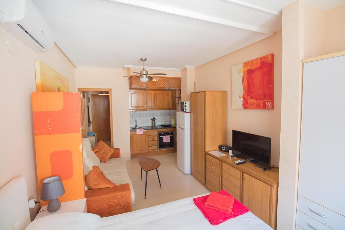 Очаровательная квартира-студия отличается особым удобством и практичностью. Яркая, стильная и комфортная квартира в Испании находится в замечательном городке Торрревьеха, побережье Коста Бланка на второй линии Средиземного моря!