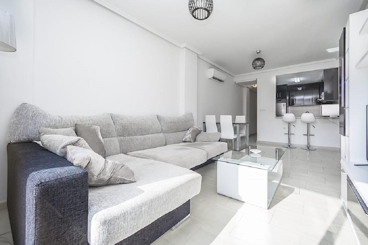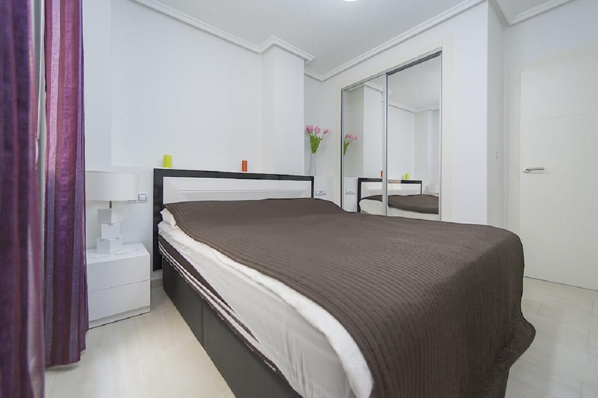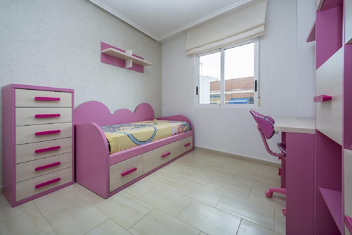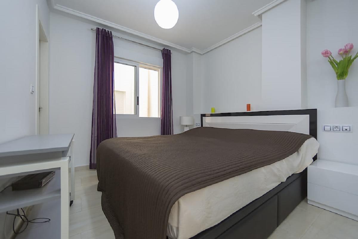 Квартира в Торревьехе достаточно просторная — 65м² с удачной панировкой: большой светлый салон с выходом на террасу 12м² и обеденной зоной, полностью укомплектованная кухня современной бытовой техникой (керамическая варочная поверхность, посудомоечная машина, мощная вытяжка, стиральная машина, холодильник с морозильной камерой, чайник, микроволновая печь) и мебелью. В главной спальной комнате двуспальная кровать и гардероб для хранения вещей плюс собственная ванная комната. Вторая комната также со встроенным шкафом-купе. В квартире есть еще одна гостевая ванная с душевой.