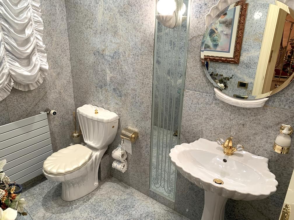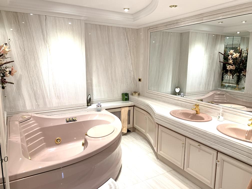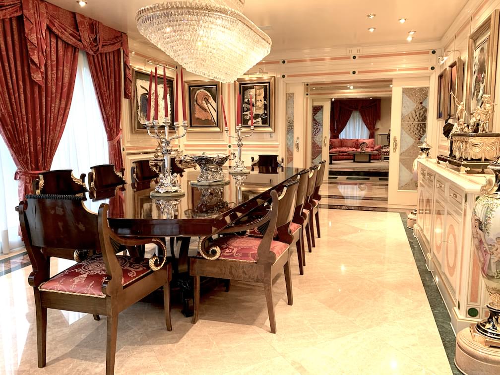 All the furniture is high quality, equipped with Villeroy & Boch (bathrooms), sound system bang & Olufsen and everything made ad-hoc with quality marble and best wood for the furniture. There are also fresh paints in the house and sculptures.