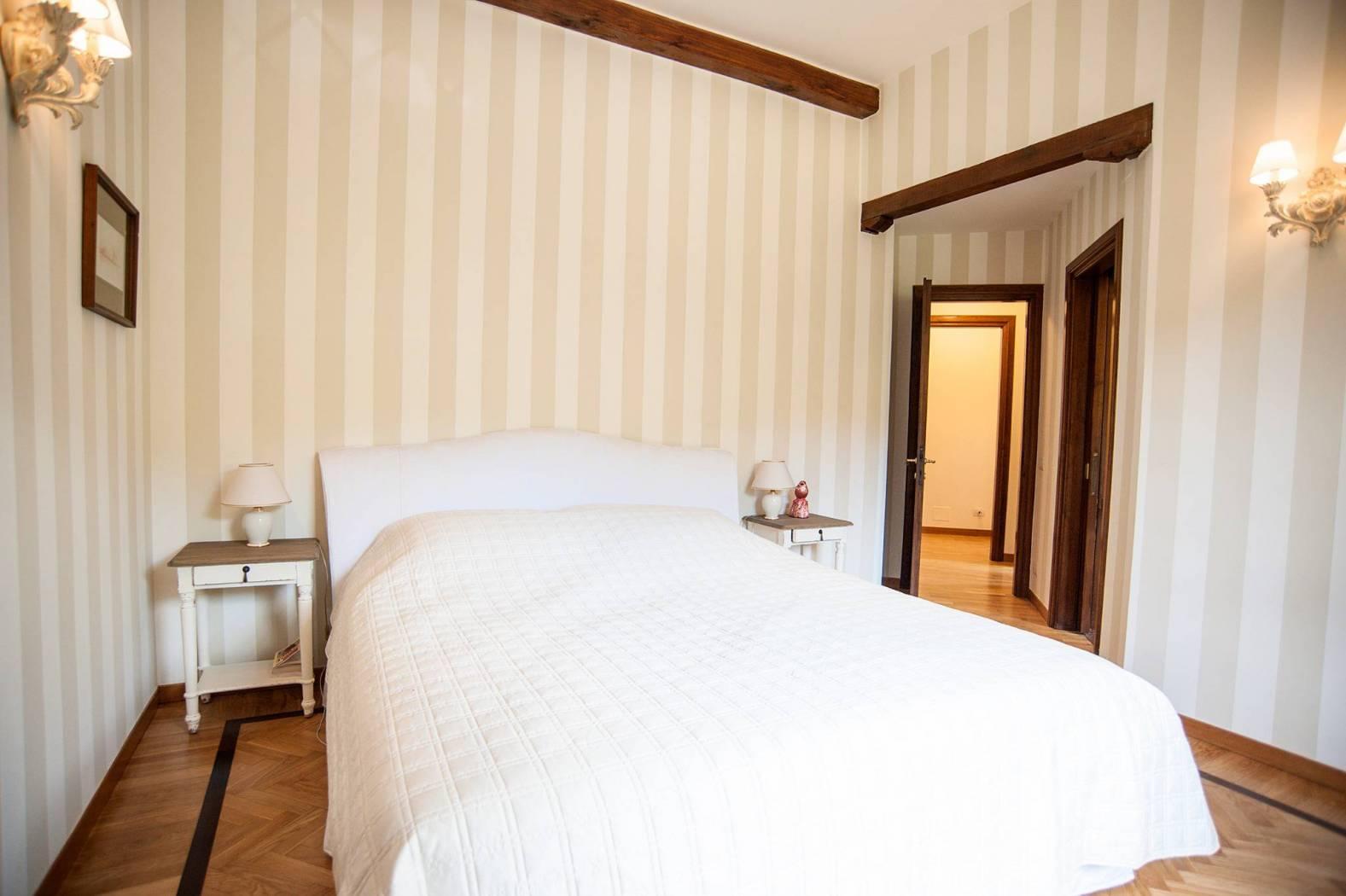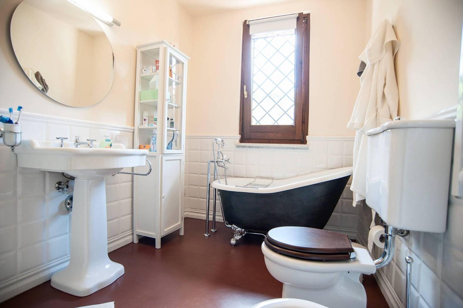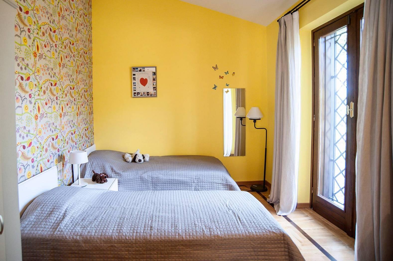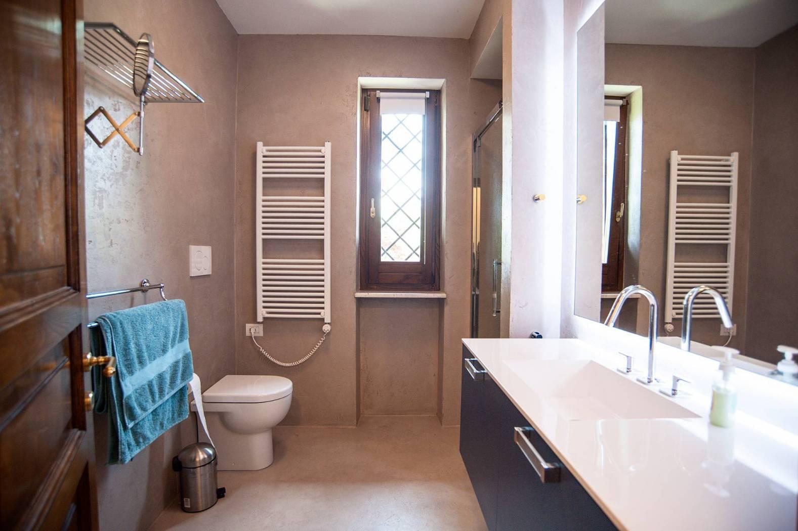 The villa is on two floors and to welcome us inside we find a bright living room with a thermo-fireplace, a representative dining room and large windows from which you access the external porch that overlooks the pool and where you can admire a beautiful view.Continuing we find a comfortable, modern and well-equipped professional kitchen made to measure and laundry.The sleeping area consists of a double bedroom with an elegant old-england style bathroom, a huge and equipped walk-in closet, another bedroom and a bathroom.