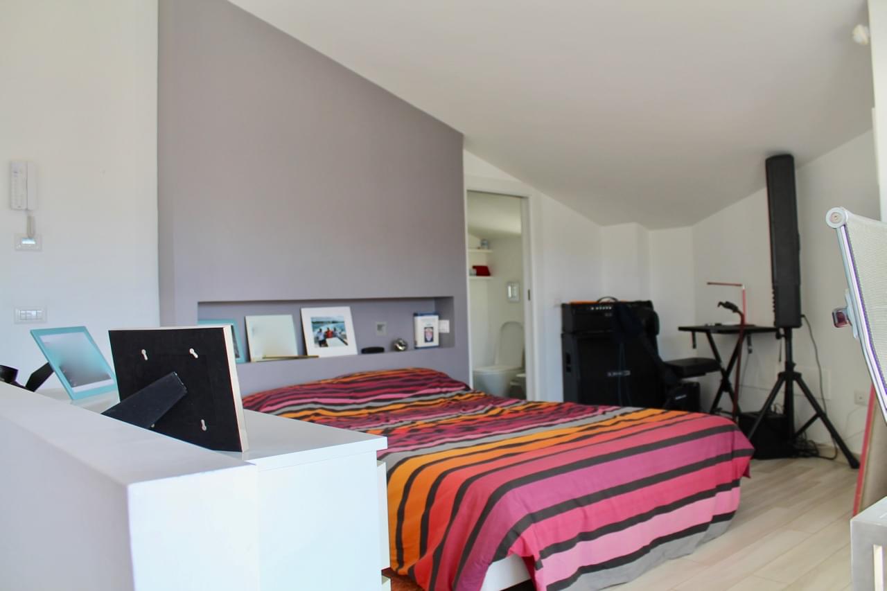 On the top floor there is a cozy bedroom for a couple, with an amazing panorama view, with a bathroom and a dressing room.