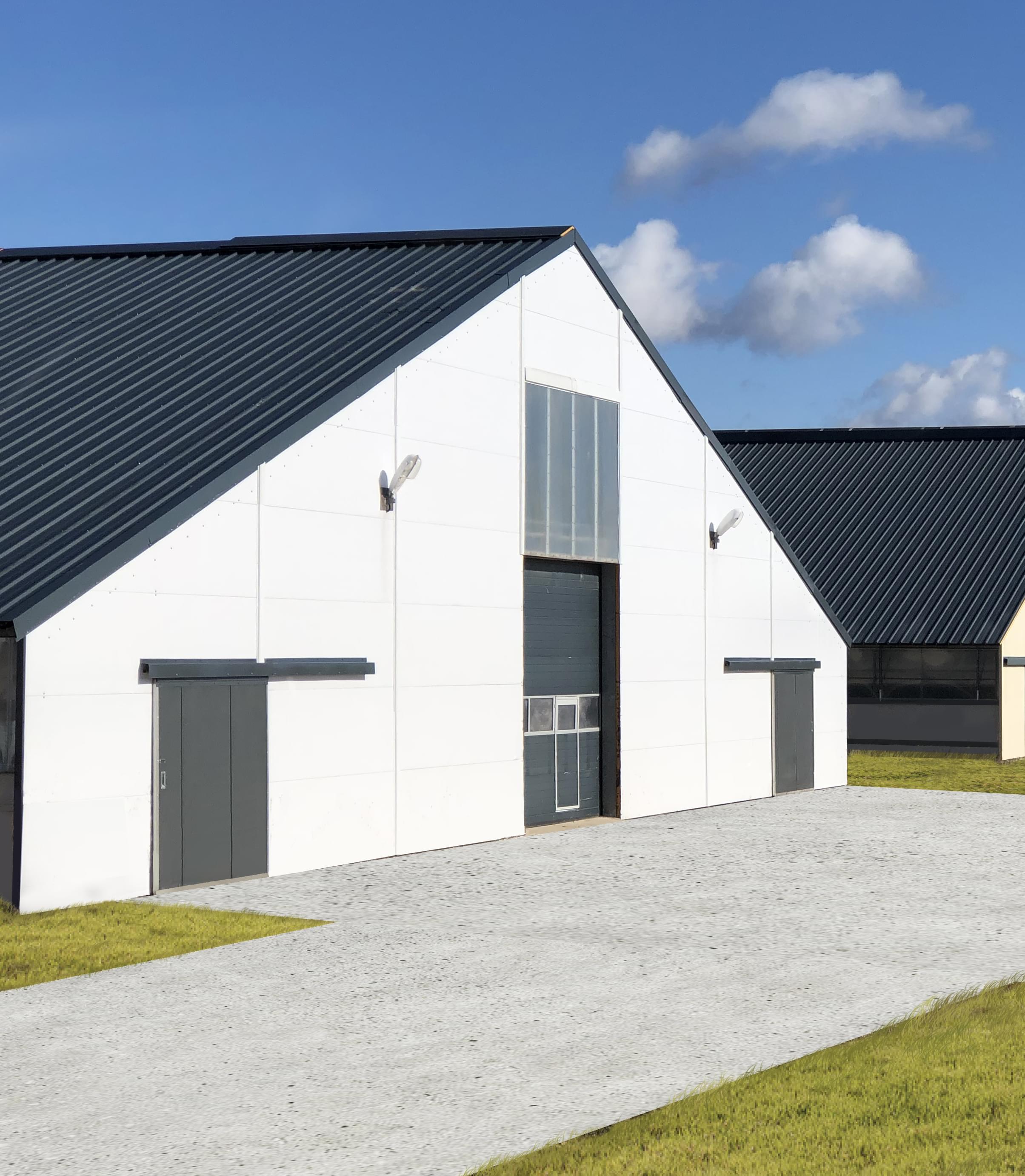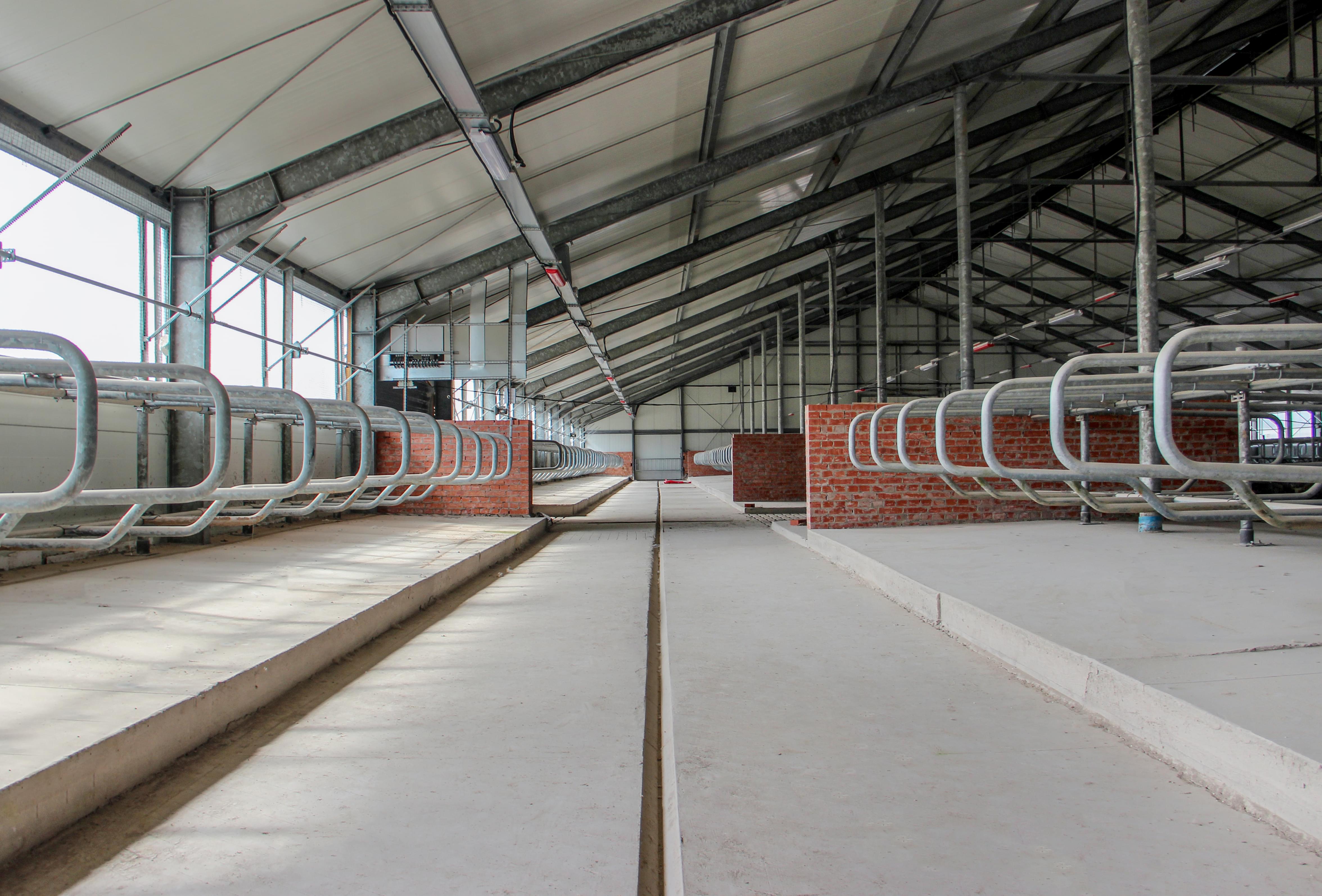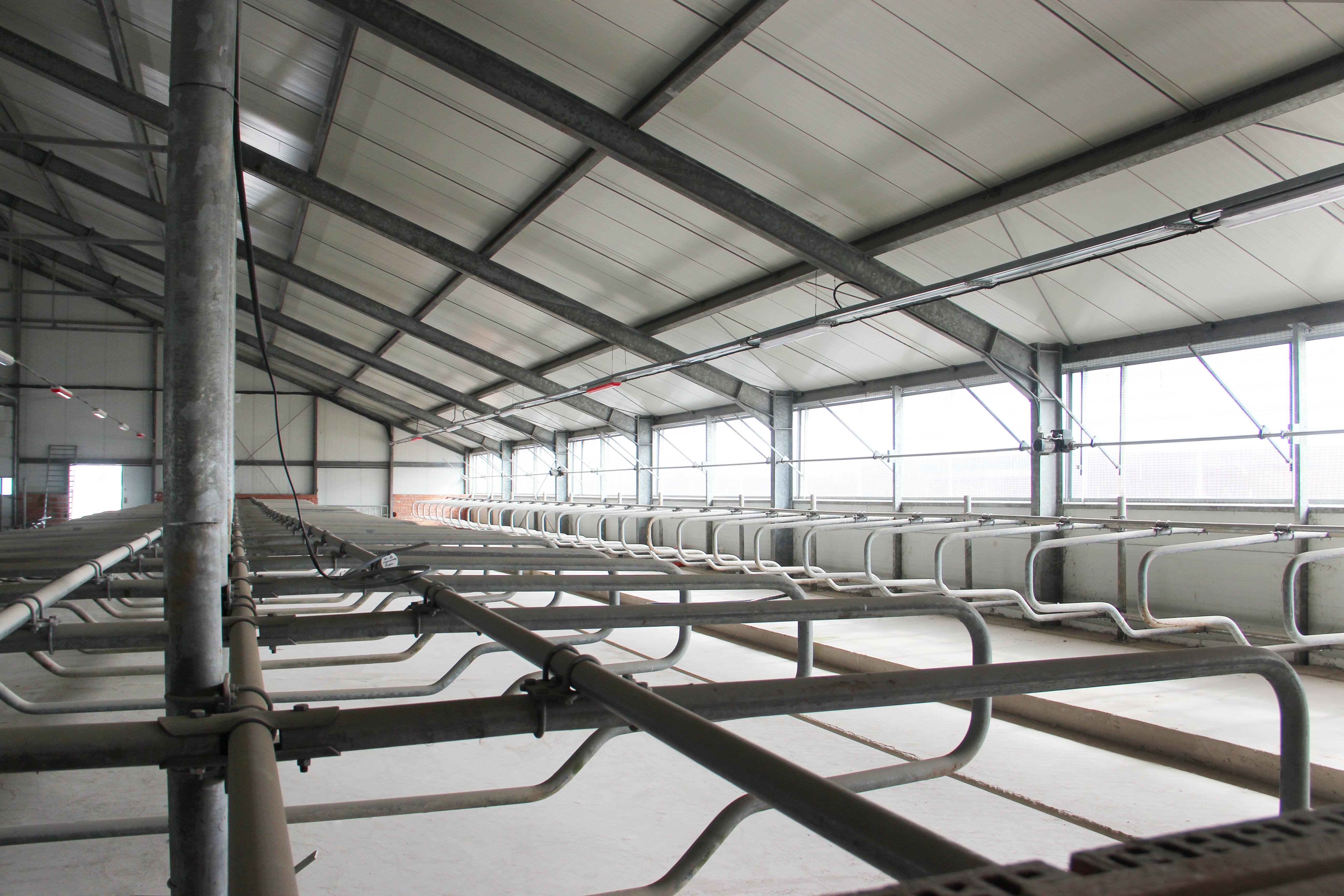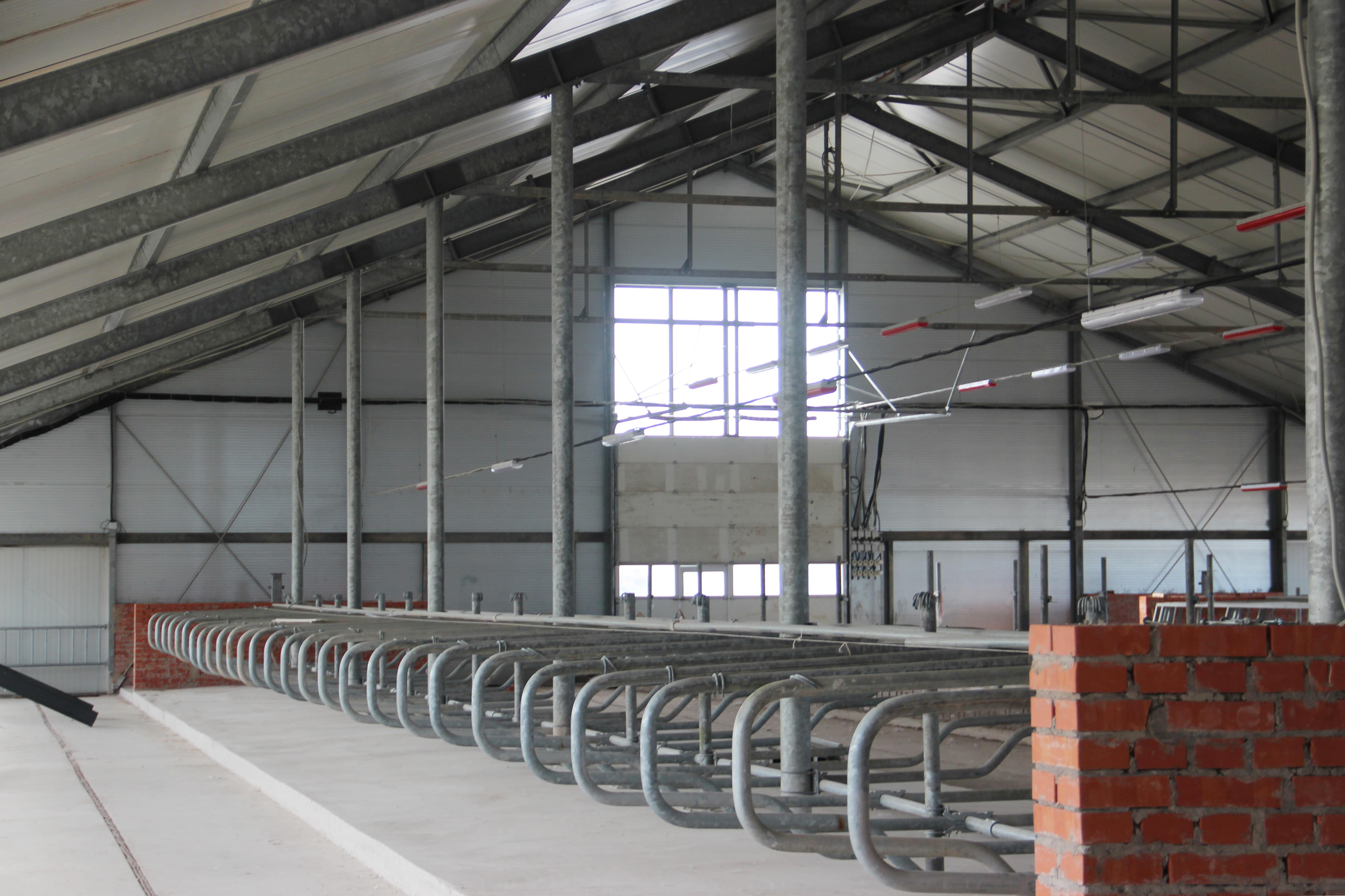 The farm building is completely collapsible, made of galvanized metal, three-layer metal panels with insulation made of polyisocyanurate foam. Automatic opening of windows is used to ventilate the premises. The cowsheds are equipped with LED lamps that save up to 50% energy. Stall equipment is installed in the barns.