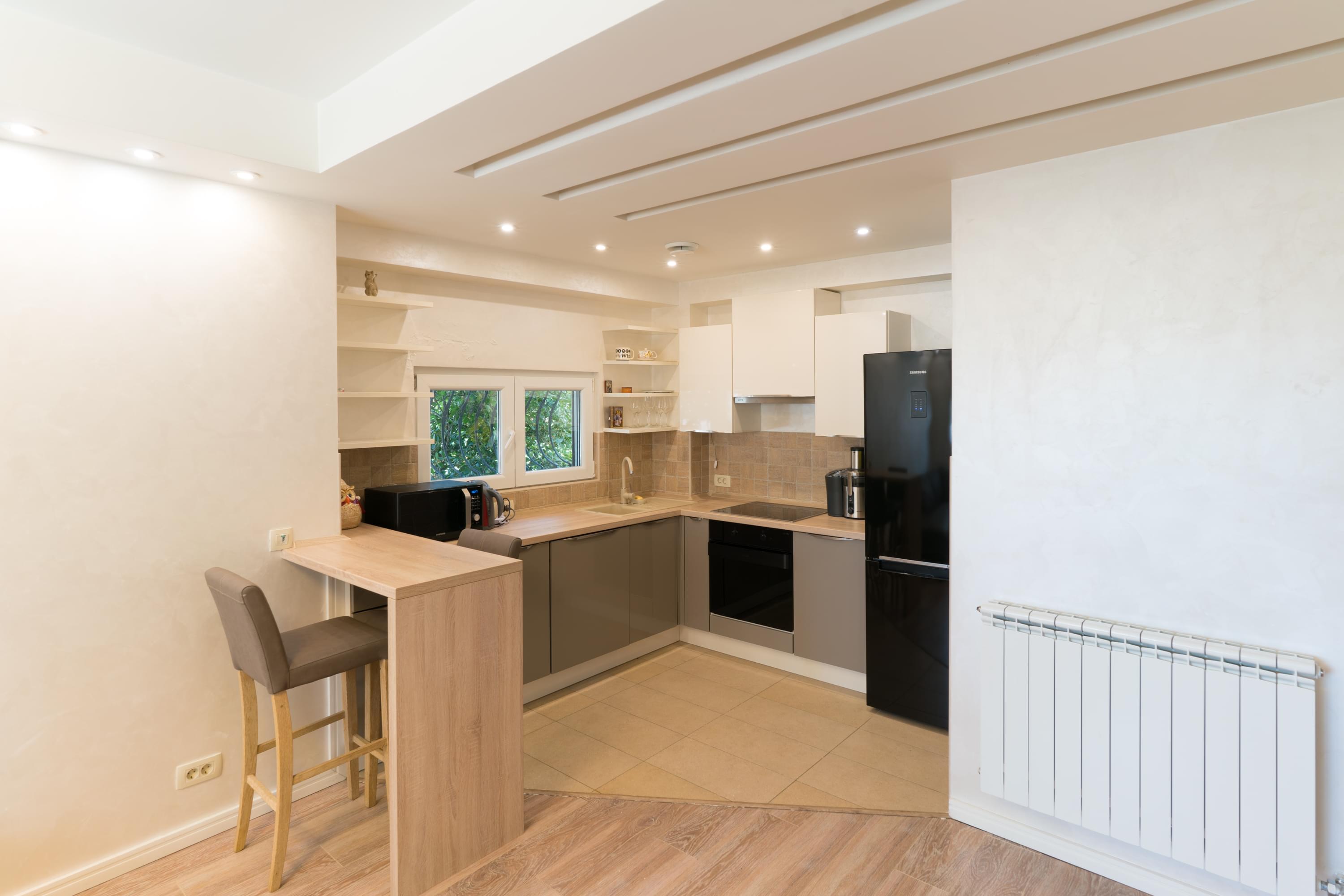 Excellent condition. Equipped with expensive villeroy & boch household appliances and fixtures, German cuisine. The equipment includes heating and ventilation systems, air conditioners, internet and television. The decoration used Spanish parquet and Italian ceramic tiles.