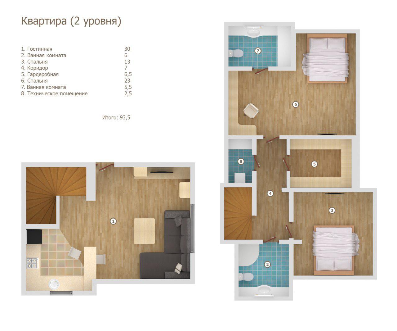 Fully furnished, 2 bedroom duplex apartment in a new building just 50 meters from the sea. A great option for a family with children!