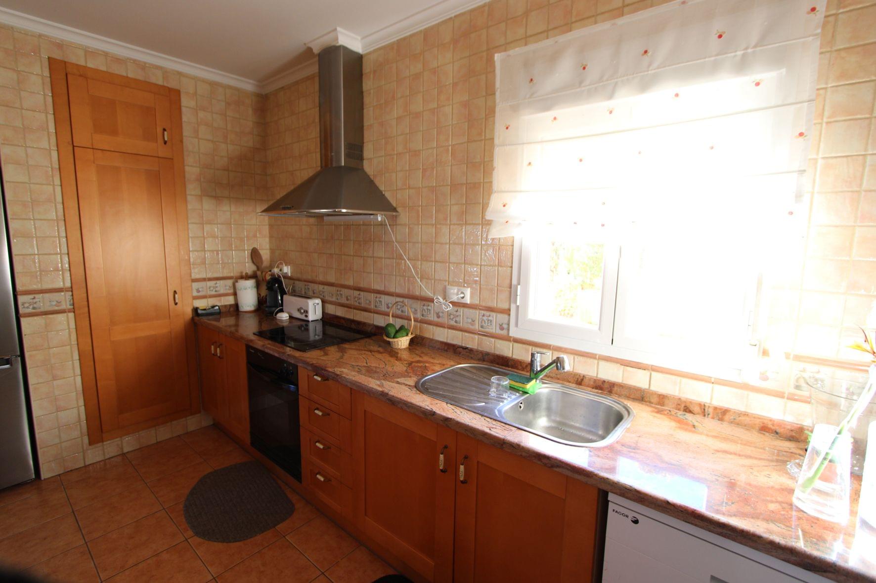 Sea view villa for sale in Vall de Laguart (Costa Blanca). The villa consists of two floors with the following distribution. The upper floor is divided into living/dining room, open kitchen, covered terrace and a bathroom. The ground floor consists of a bathroom, 4 bedrooms, one of them with a dressing room. Separately on the ground floor there is a wine cellar and a large storage room. In the house there are also extras such as air conditioning, fireplace, barbecue, double glazing, parking space for one car with carport. The property is very close to all amenities such as supermarket and restaurants. The nearest beaches are 15 minutes away. The largest shopping center in the area is in Ondara, about 10 minutes away by car, as is the motorway to Valencia (1 hour) and Alicante (1 hour). This property is suitable either as a holiday home or for permanent living.