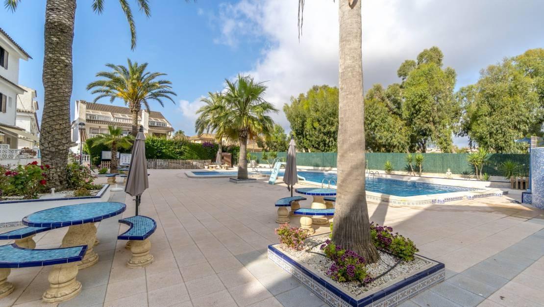 Semi-detached house with 3 / 4 bedrooms, in the residential area of Rocajuna, near the Punta Prima area and just 1 km from the beach. A central location allowing a short 5 minute drive to Torrevieja or Orihuela Costa. Close to all kinds of services, shopping centers, schools, seafront, hospitals, parks, supermarkets, children's areas. The approximately 90 m² house is built on 3 floors and has a terrace in front of the ground floor. Large living room, shower room and fully fitted separate kitchen with access to a rear terrace and access to a communal area with gardens and a beautiful communal pool. On the first floor there are two bedrooms with fitted wardrobes (one with access to a terrace) and a complete bathroom. On the third floor there is another large bedroom overlooking the pool and the surroundings of the urbanization, as well as a covered solarium and a multi-purpose room. All rooms have air conditioning. Perfect to live all year round!