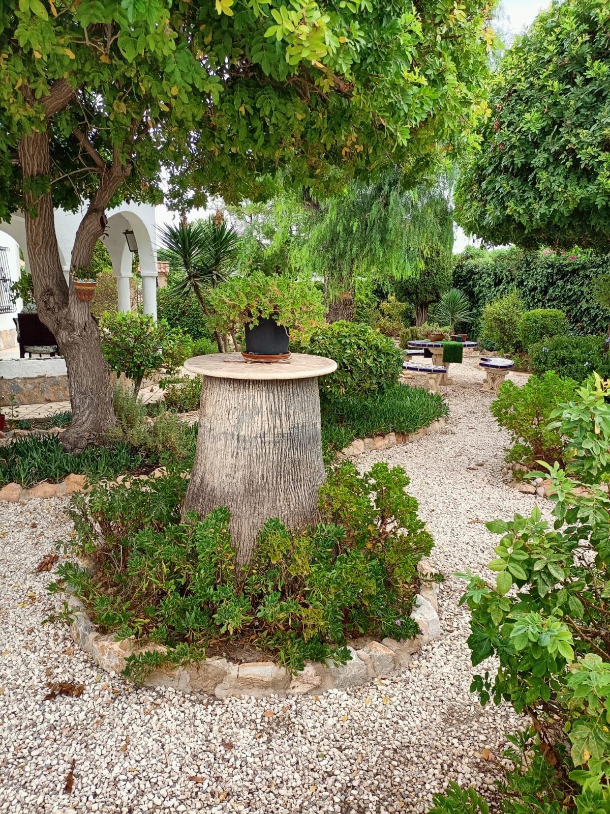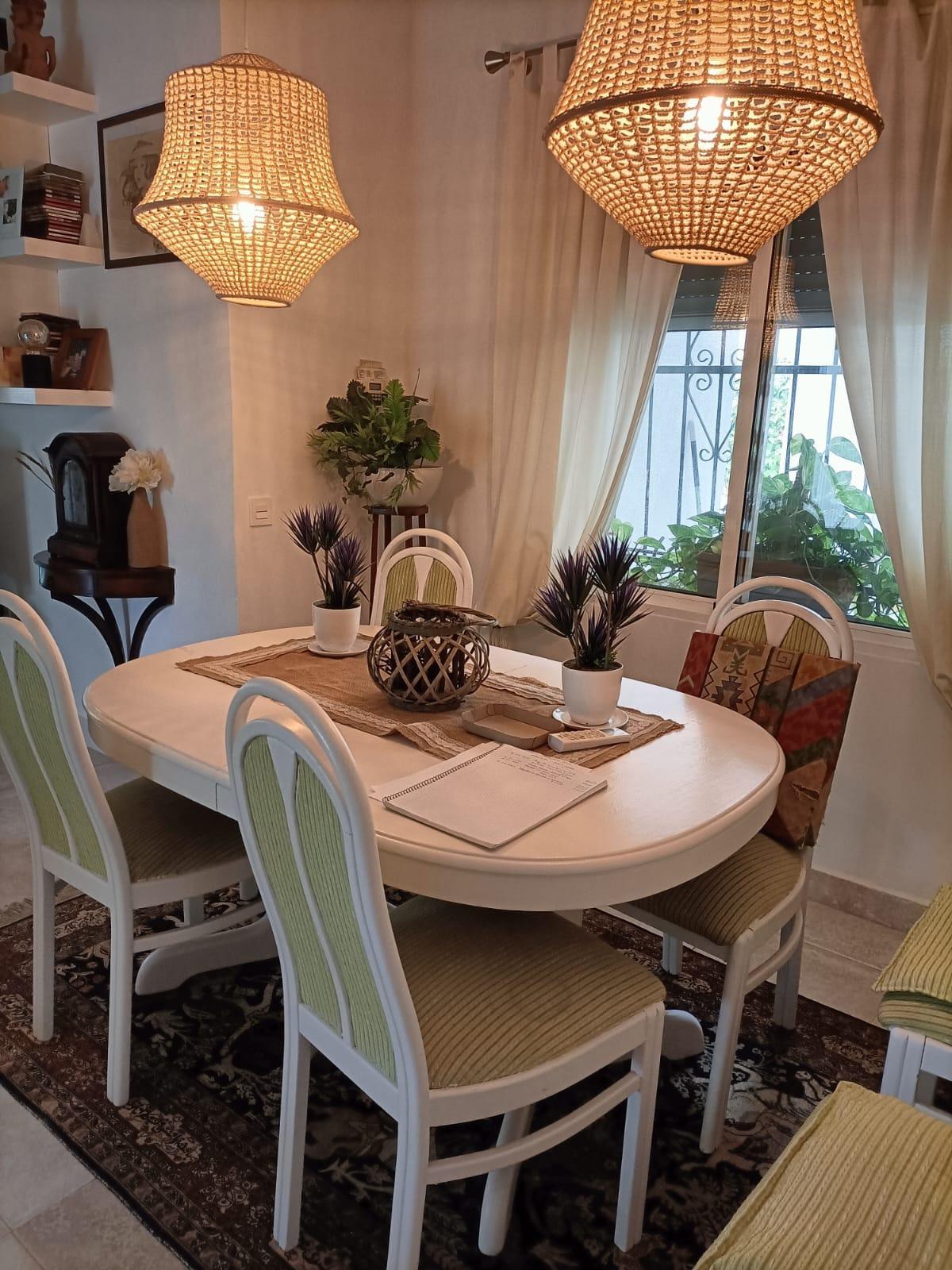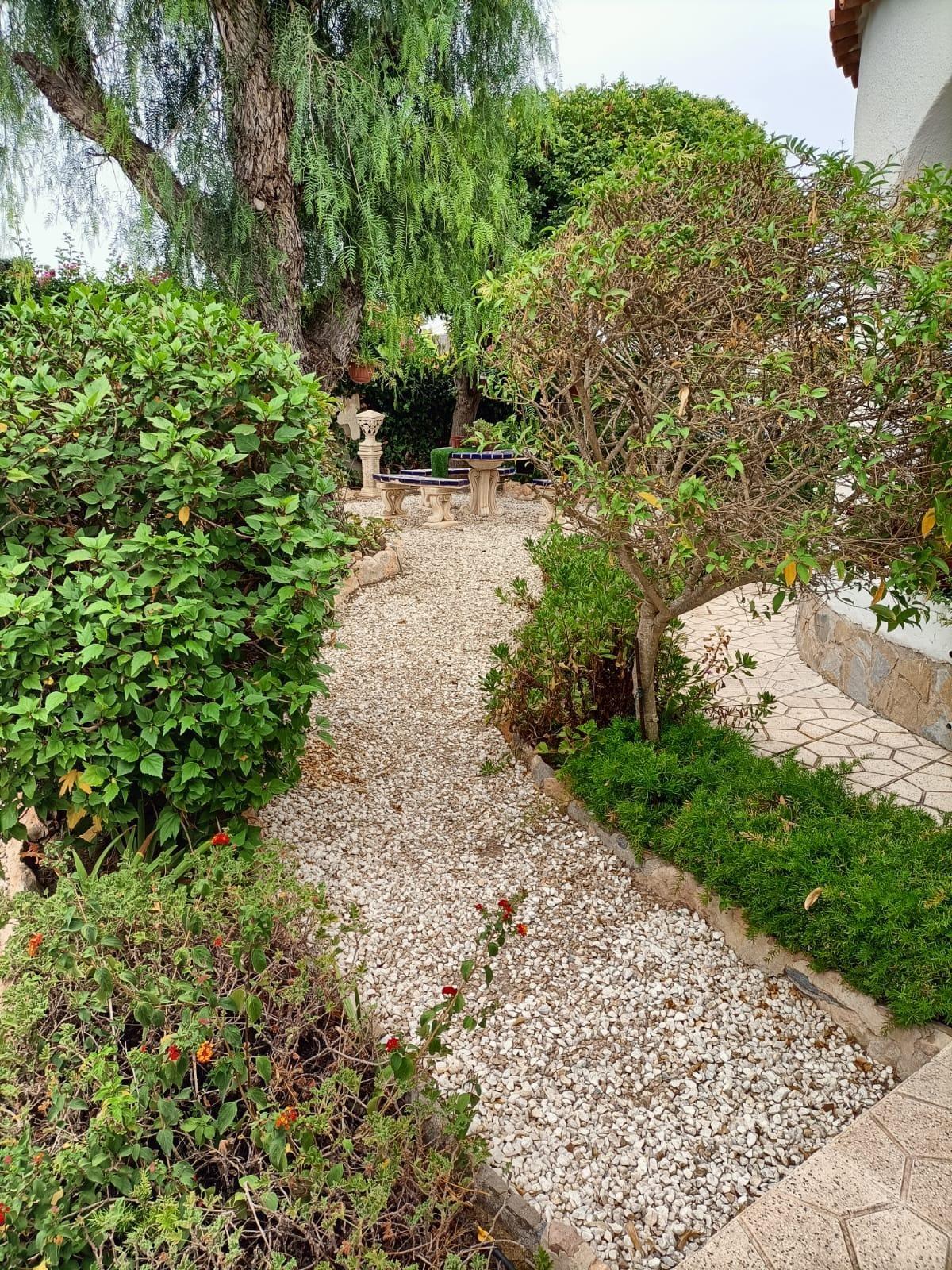 Single storey 4 bedroom villa on a plot of approximately 900 m2 in the quiet urbanization of Torreta Florida, on the outskirts of the city of Torrevieja with all its services, commerce, transport, schools, hospital and just 5 minutes from Acequion beach, the promenade and the Harbor away. The villa of approximately 150 m2 has a covered veranda, a large living room, kitchen, 3 bedrooms, 1 bathroom and storage room. On the property there is a building (as a guest house) with one bedroom and guest toilet, garage and solarium with a view of the salt lake and the area. The rest of the property is landscaped with green areas and terraces. The villa has heating and air conditioning. Part of the property is paved with gravel and is easy to maintain. You can also enjoy the beautiful communal pool. It is sold fully furnished and equipped with all appliances. IDEAL for living all year round!