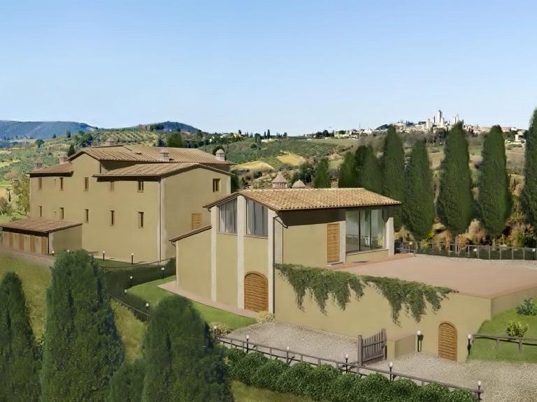 From the hill you can enjoy the views over the towers of San Gimignano, on one inside, and the valley where there was the ancient Francigena road, on the other side. The property, reached by approx. 3 Km of gravel road,  is located approximately 9 km far from San Gimignano, 40 Km from Siena, 50 Km from Florence.