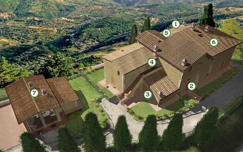 There are 6 apartments inside the main farmhouse all restored with great care and taste maintaining the typical character of the old Tuscan houses. Complete the property the car parking area and a wonderful swimming-pool with paved solarium.