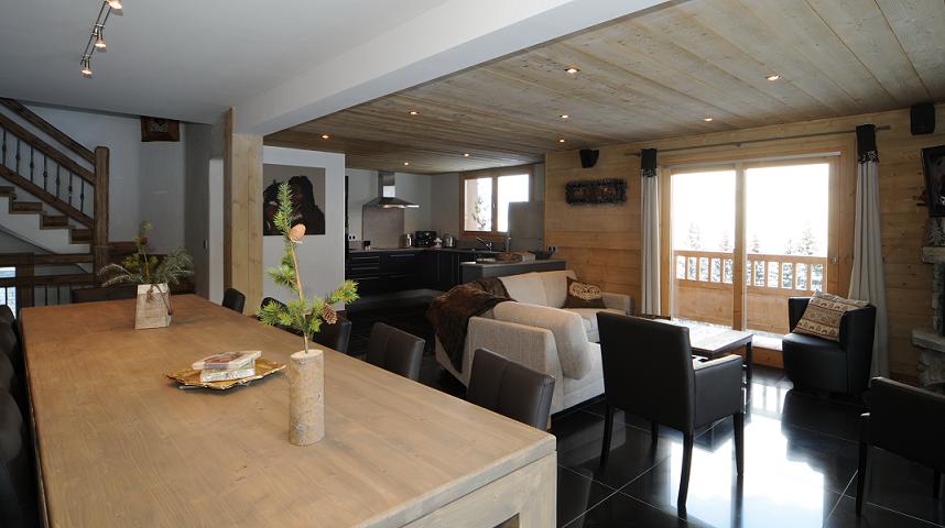 В шале 5 спален, 5 ванных комнат, американская кухня, столовая, гостиная с камином, терраса, игровая комната, домашний кинозал, хаммам, джакуззи,