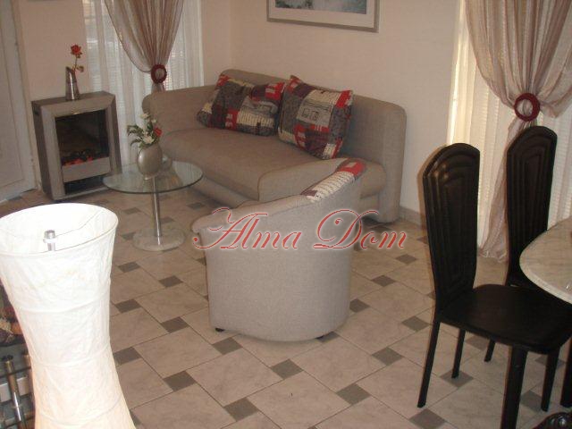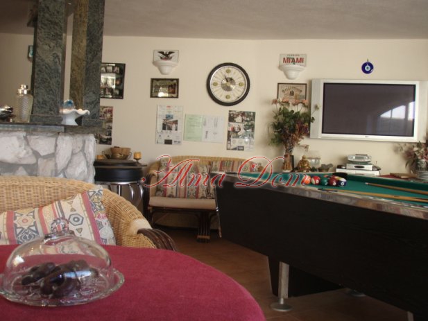 1.Квартира 100м2 с террасой площадью 30 м2 с двумя спальными комнатами, ванной комнатой с сайуной, гостевым туалетом, гостиной с камином, обогревающий площадь всей квартиры, кухня, кладовка, терраса. Есть кондиционер.
