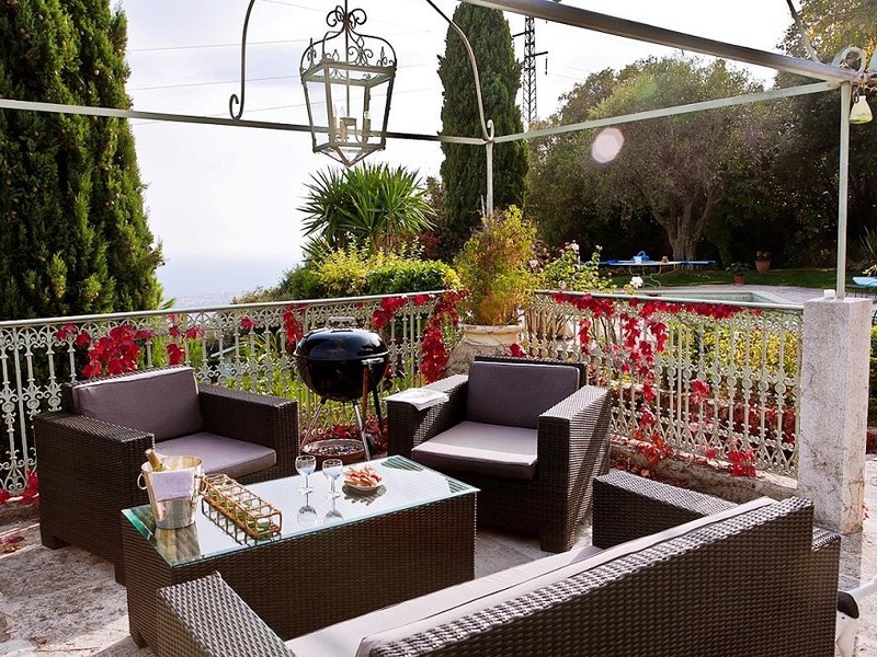 On the heights of Nice, 8 km from center city, in a quiet and green district, beautiful provencal country-house situated on a ground of 3000m², having a magnificent sea view. Private swimming pool with steps (12m x 5m - Depth 80/200cm - Alarm). Terraces with garden furniture, transats and BBQ. Ground of petanque. Parking 4 cars. Shops 1 km. . Supermarket 3km. Sea and shingle beach 8km.