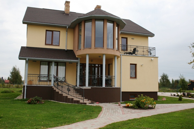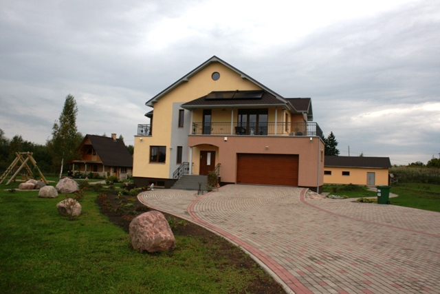 Was built in 2008. On the territory there is a bathhouse (with a lounge on the ground floor and 2 bedrooms on the 2nd floor) and small house for equipment (2 rooms, 90 m2). House has 2 floors. It is possible to equip the 3rd floor, attic (100 m2). On the ground floor there are living room with fireplace, dining room, Italian kitchen, bedroom and bathroom. On the second floor there are owner's bedroom, 2 guest bedrooms, children's room, cabinet, bathroom. Ground floor: garage for 2 cars, cool room, boiler with heat pump, laundry room. room. There in House are 2 terraces. There are rooftop solar panels, water from wells, bio sewage. Installed camera outdoor surveillance, burglar alarm. Fenced territory, young garden (PEAR, currant, Raspberry), children's playground.