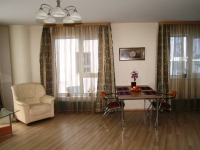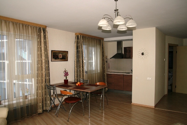 The apartment has a spacious living room, equipped kitchen, 2 bedrooms and bathroom. Quality furniture, built-in wardrobe. The apartment is located on the 3rd floor (with elevator). In the House are 24/7 security, burglar alarm, conditioning, underground parking. On the 1st floor are beauty and SPA centre. A well-arranged courtyard area lands. Near are Park, tennis courts, Yacht Club, steam, etc. Excellent transportation and infrastructure. www.rigaapartments.eu