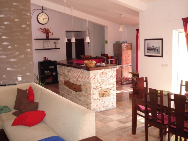 Дом состоит из трех спальных комнат, кухни с гостиной и столовой и большиой каменной барной стойки.