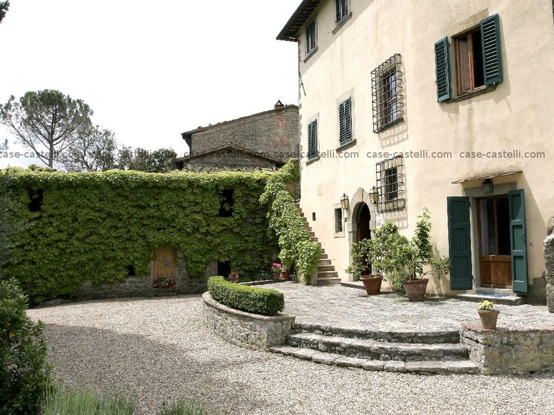 Noble old villa situated in the heart of Chianti. The villa is 400 metres above sea level and has beautiful untouched views; it extends over three floors and they are all in excellent condition and the last restoration work was carried out in 1996. The gardens and terraces are habitable and extend over two levels and the swimming pool is 5x10 and situated on a patio near a green field with a gazebo below the villa. From the kitchen you can see the views over the terrace and is covered and ideal to enjoy your meals while you look at the views over the countryside. The stairs and door frames are made of stone (pietraserena). The living room on the first floor has a high ceiling made of wood so you feel the noble presence.