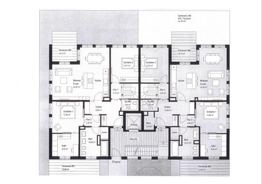 В престижном районе Мюнхена "Харлахинг". Квартира расположена в строящемся доме на первом этаже с террасой. Заселение в дом в конце 2015 года.