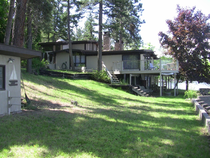 Lakeshore Property at Okanagan Lake, BC, Canada with exclusive 4 bedroom, 3 bathroom home on 424 feet of lakeshore
