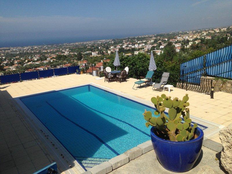 This superb 4 bedroom spacious villa has been immaculately designed & part furnished offering all luxuries you could possibly imagine. Located only 5 minutes drive east of Kyrenia, boasting magnificent sea & mountain views, beautiful landscaped gard...