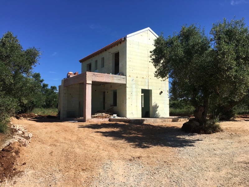 The house is under construction, and the estimated completion date is calculated in 4-5 months. The total area of the plot is 4.300 sq.m. And has its own olive grove. The total area of the house is 140sq.m, and gives another possibility to build 55 s...
