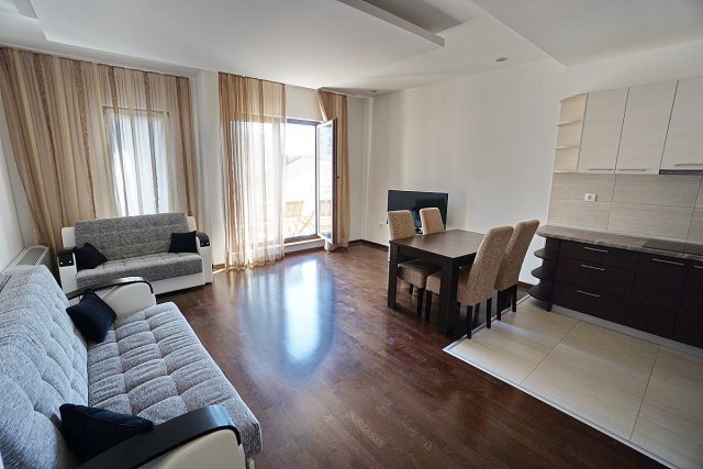 A spacious 59 m2 apartment is located in the heart of Budva in the modern complex “Luzitanos”. There is a courtyard, an underground garage, 24 hour security, video surveillance, central heating and air conditioning. Every apartment is provided with t...