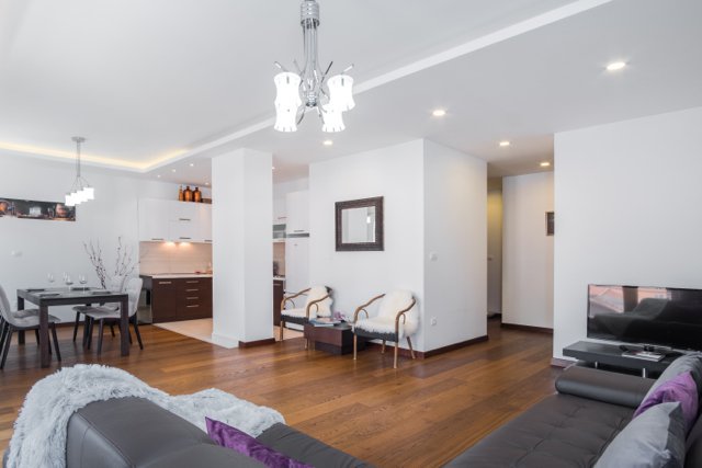 This contemporary fully furnished 95 m2 apartment is located in the heart of Budva on the 3rd floor of a modern apart-hotel TQ Plaza. TQ Plaza has its own facilities with many fashion shops, cafes, restaurants, a supermarket, a pharmacy, a cinema, of...