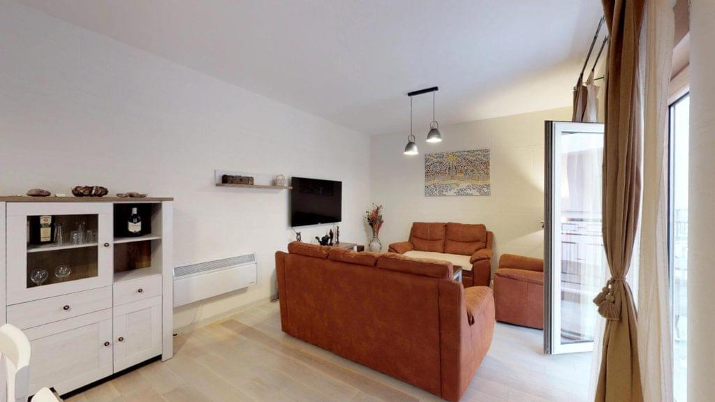 Светлые апартаменты располагают собой светлую гостиную, укомплектованную кухню и уютную спальню. Выход на террасу есть сразу в двух комнатах.
