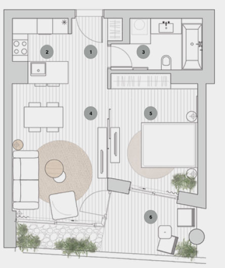 Apartment 59 m2 / Floors: 3 / Rooms: 2