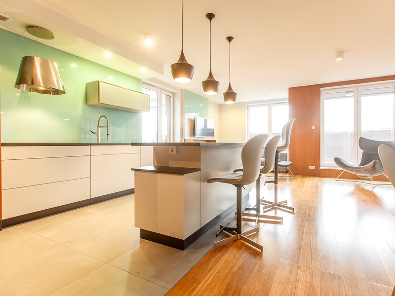 Luxury apartment is located in the heart of Cracow just by the rover Vistula. It has 146 square meters and 100 square meters terrace. In the apartment there are 3 bedrooms, 2 full bathrooms, laundry room and very big living room with kitchen. Apartm...