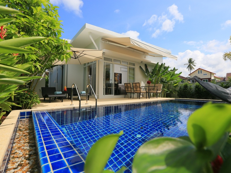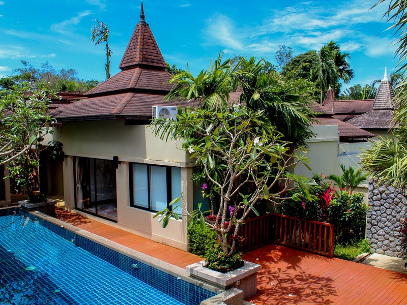 Luxury villa with pool in a Balinese style, combining modern design with traditional Thai architectural features. This house makes an impression at first sight: a massive wooden doors, a tropical garden and a terrace, a wooden dining table and a harm...
